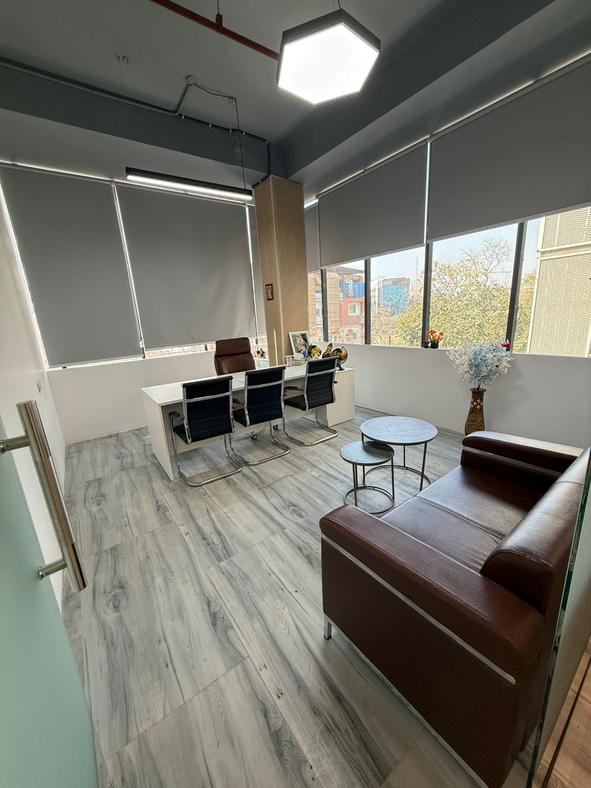 Consider this spacious 4-bedroom, 4-bathroom independent house in the prime Sector 43 locality of Noida, available for rent at 9.5 Lac per month, offering a generous 3300 square feet of living space and a pleasant road view.