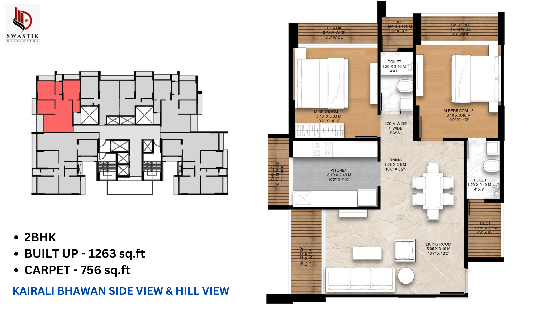 • 1263 Sq.Ft. Built-up Area