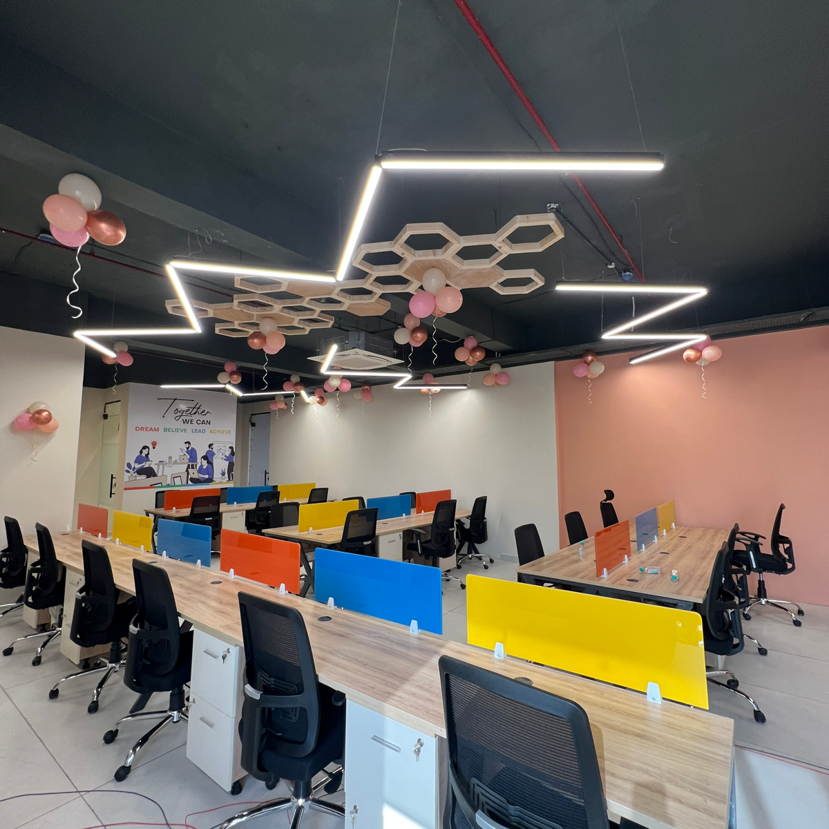 A flexible and modern office environment is now available for rent in Sector 74, Mohali, offering a fantastic road view and measuring 625 square feet, all for 38 thousand per month.
