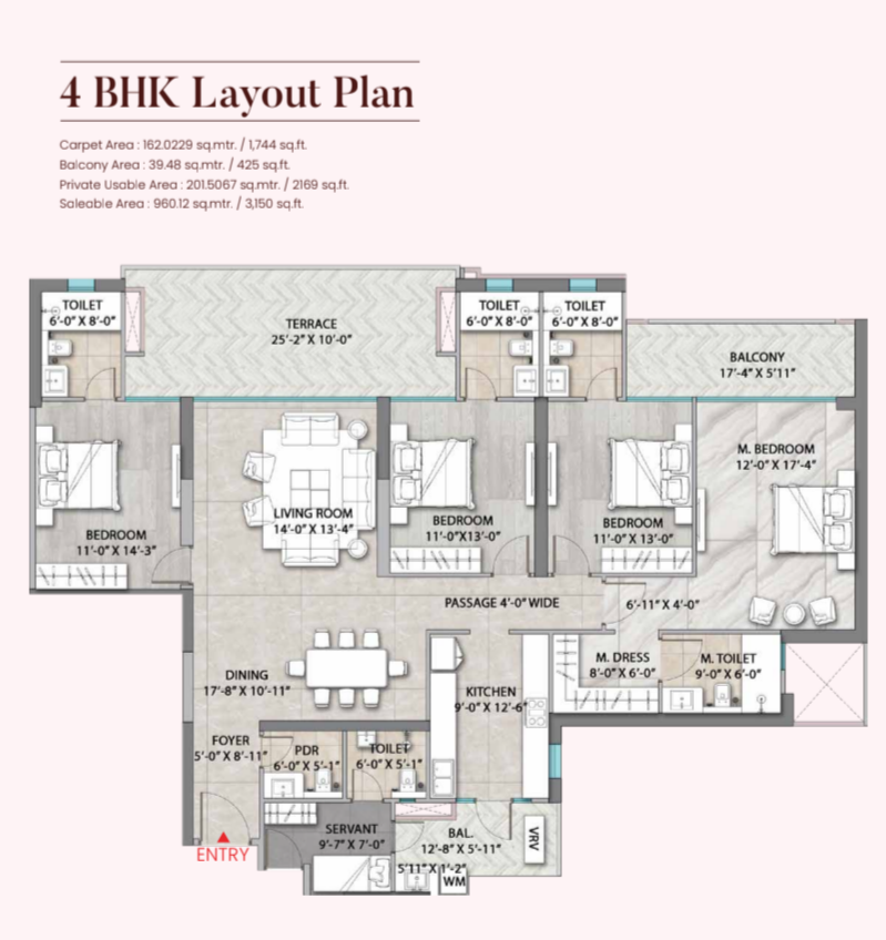 Experience a life of sophistication in this 3.5 bedroom, 4 bathroom Flats located on the 20th floor within the Suncity Monarch Residences in Sector 78, Gurgaon.