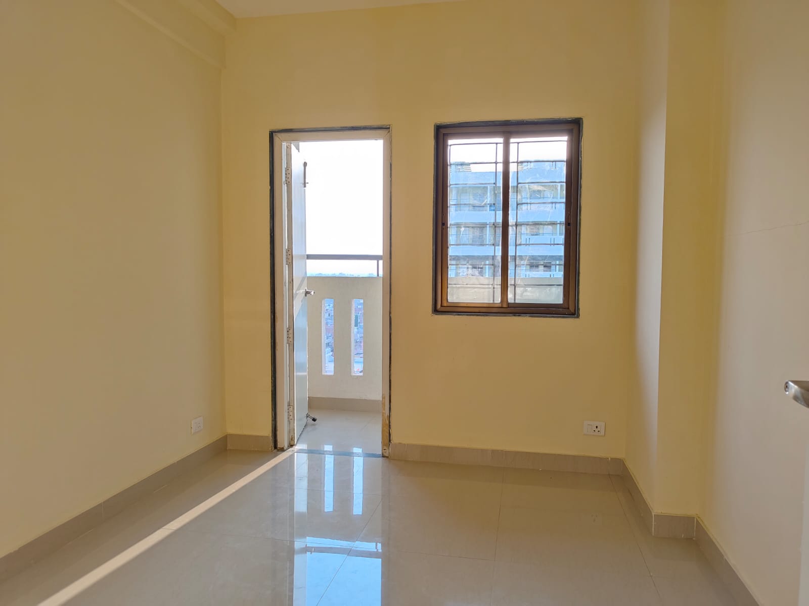 A 13th-floor unfurnished one-bedroom Flats in Sector 14 Dwarka, Delhi, offers 850 square feet of living space with a park view, ideal for a small family seeking a secure and well-lit home within a gated society.