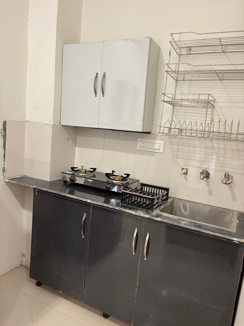 This furnished one-bedroom Flats on VIP Road, Zirakpur, is ready for immediate occupancy at 13 thousand per month.