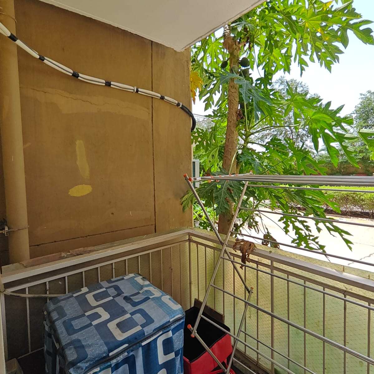 • This semi-furnished home offers 1116 square feet of well-ventilated space with a pleasant road view from its third-floor position within a gated society.