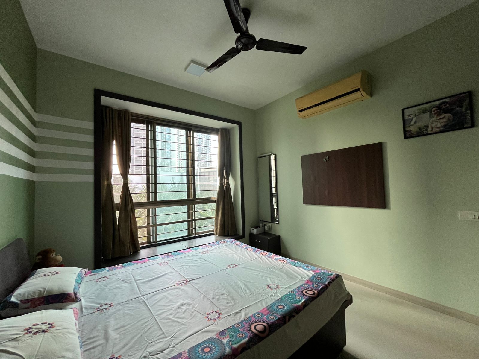 • Spread across 950 Square Feet, this semi-furnished home offers a peaceful Garden View from the 11th floor of