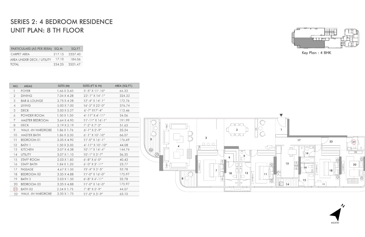 Secure a remarkable lifestyle with this unfurnished, four-bedroom, four-bathroom Flats in Mumbai Versova, offering a stunning sea view from the 21st floor of Rustomjee Ocean Vista.