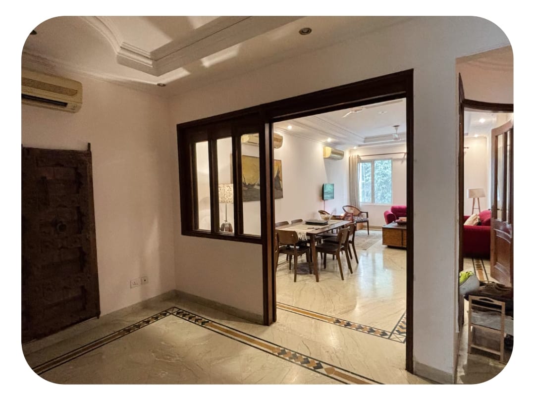 Secure a spacious 4-bedroom, 4-bathroom furnished Flats in the sought-after Greater Kailash II, Delhi, with 2700 square feet of living space.