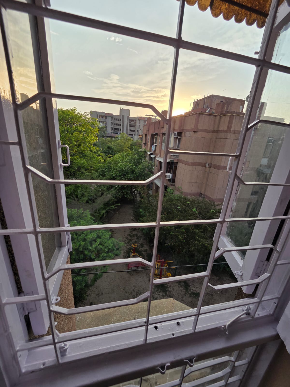 This 1050 Square Feet Flats in IP Extension, Delhi, offers a peaceful park view from its first-floor location within a four-story building.