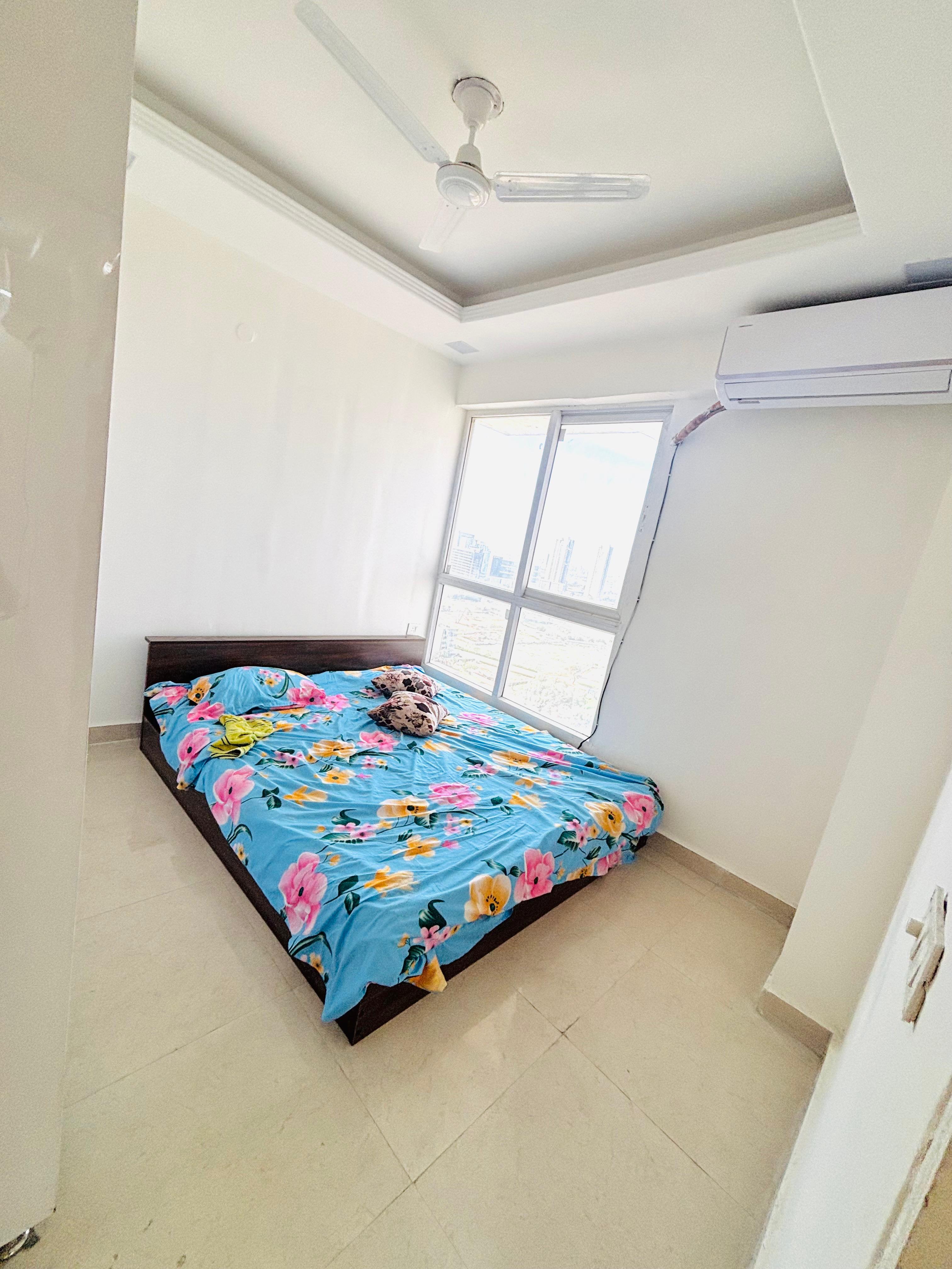 A furnished two-bedroom Flats in Gurgaon Sector 63A offers a comfortable living experience with its garden view and ample space.