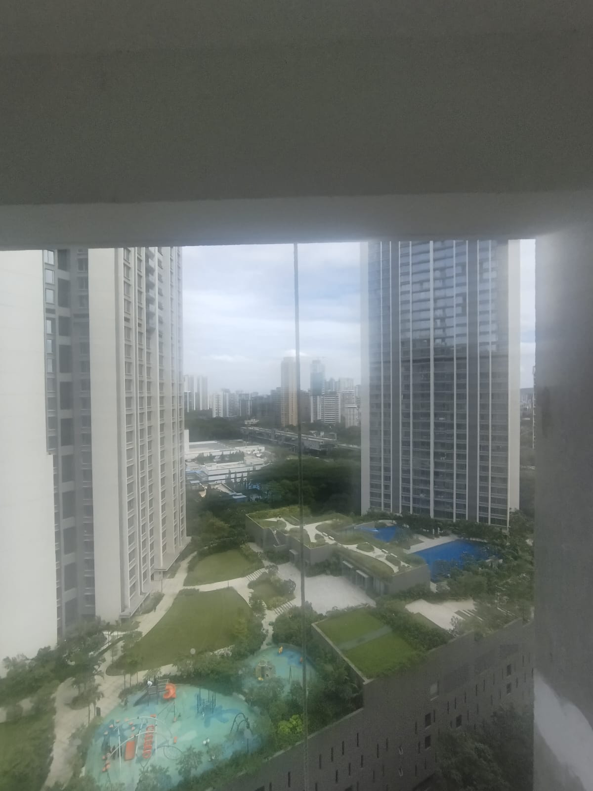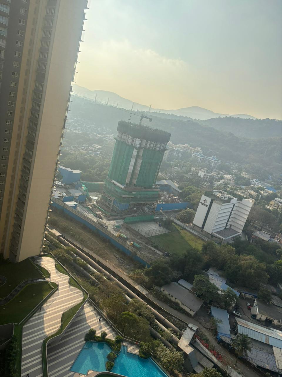 Experience luxury living in this unfurnished 4-bedroom, 4-bathroom Flats on the 15th floor of Runwal Sanctuary in Mulund West, Mumbai, offering a generous 1380 square feet with a stunning pool view.