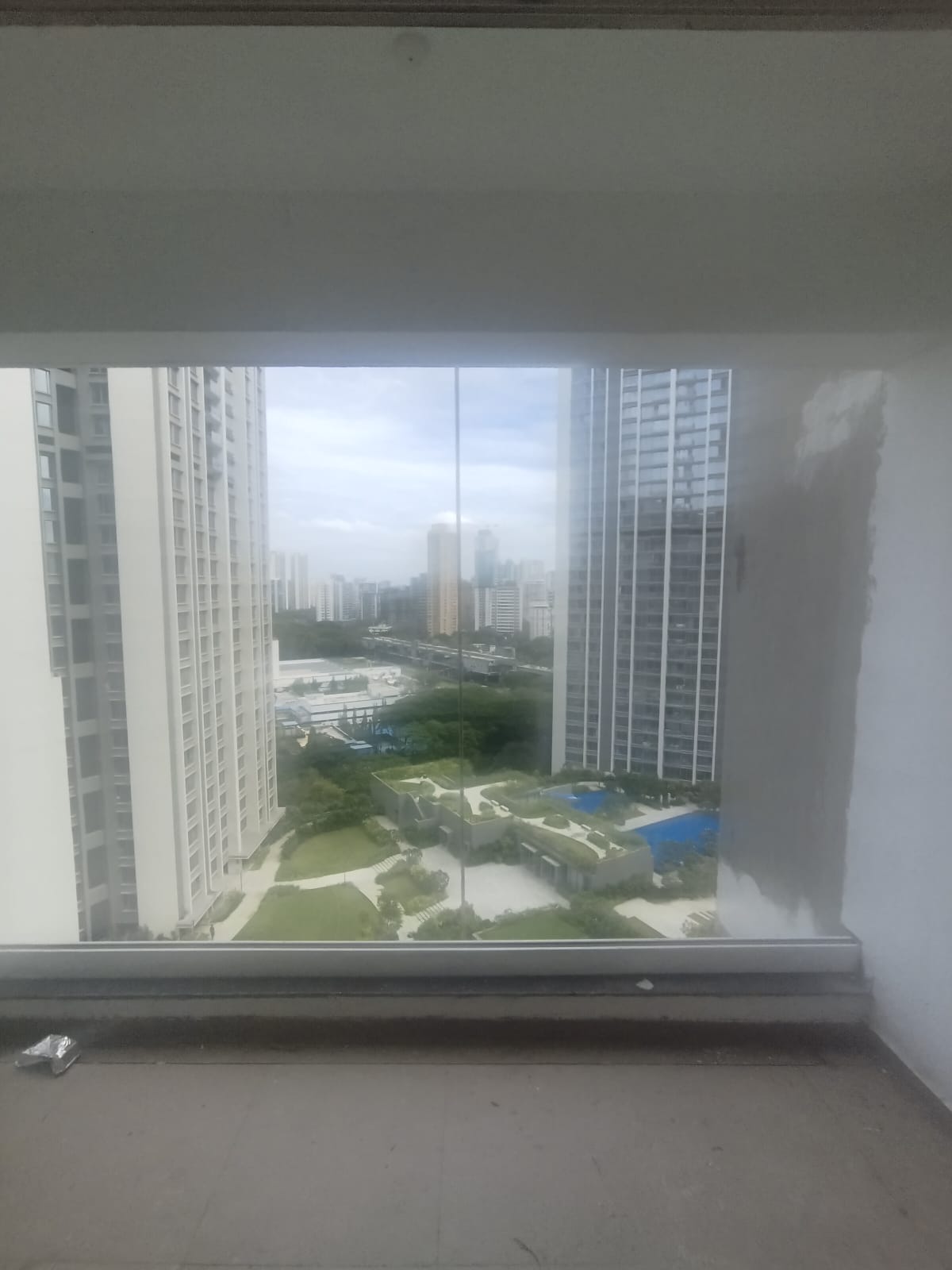 Consider this unfurnished 3-bedroom, 3-bathroom Flats in Mulund West, Mumbai, offering a spacious 1049 square feet of living space with a desirable pool view from the 15th floor of the 55-story Oberoi Eternia project.