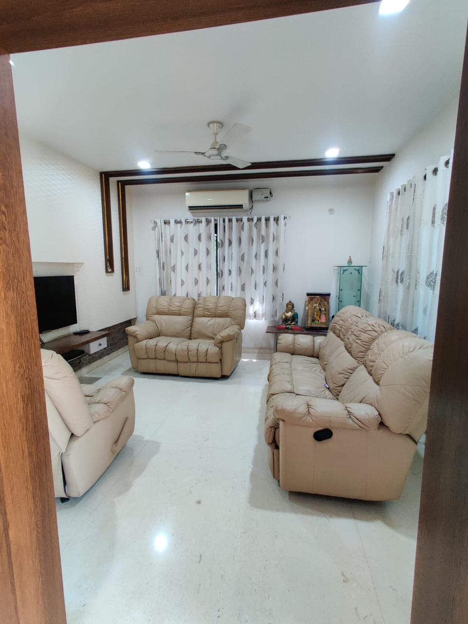 Experience spacious living in this furnished 4-bedroom, 4-bathroom villa in Tellapur, Hyderabad, available for rent at 1 Lac.