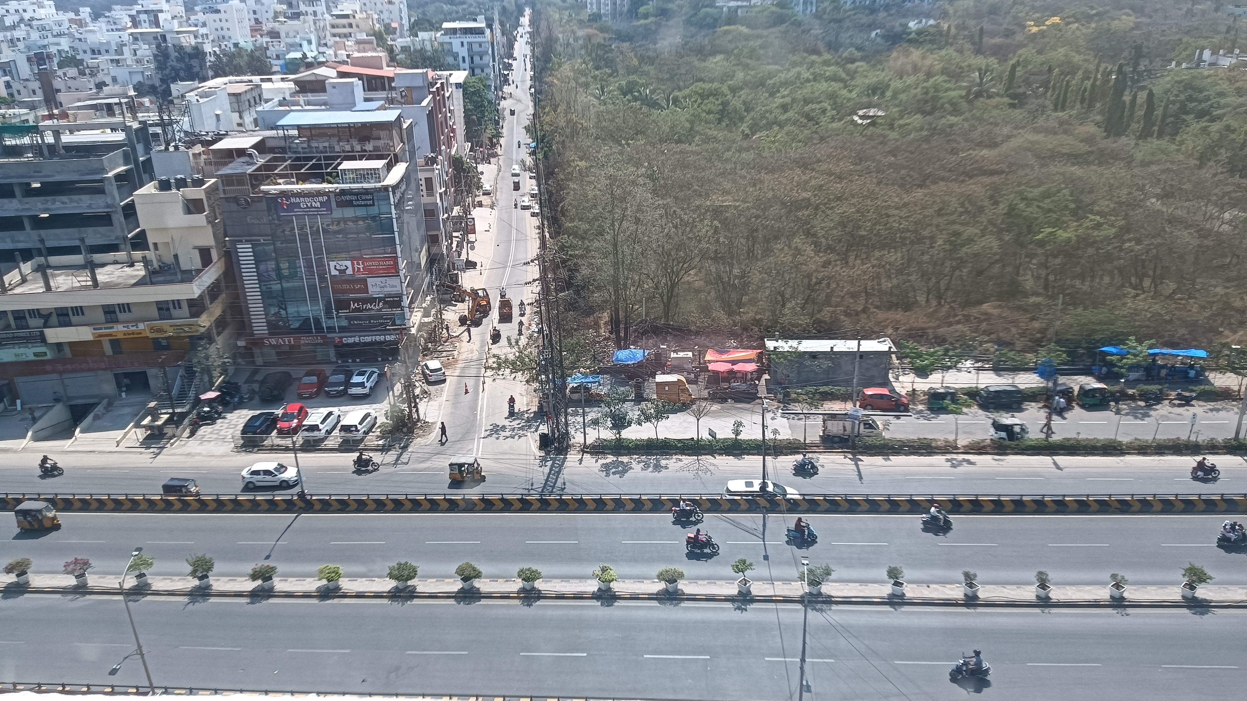 This newly built unfurnished shop in Hi Tech City, Hyderabad, offers a prime location on a wide road with excellent visibility and ample parking for four vehicles, making it an attractive rental option.