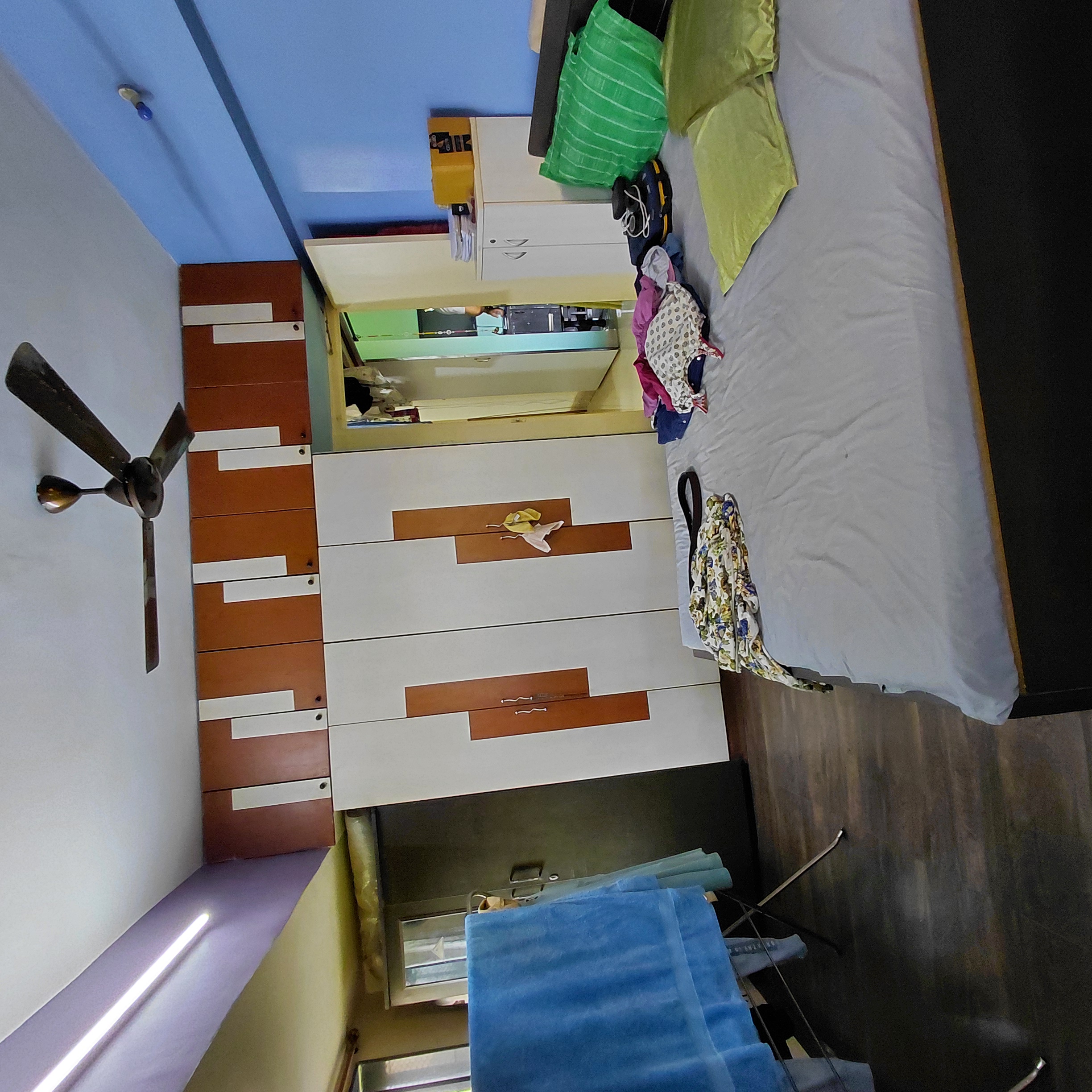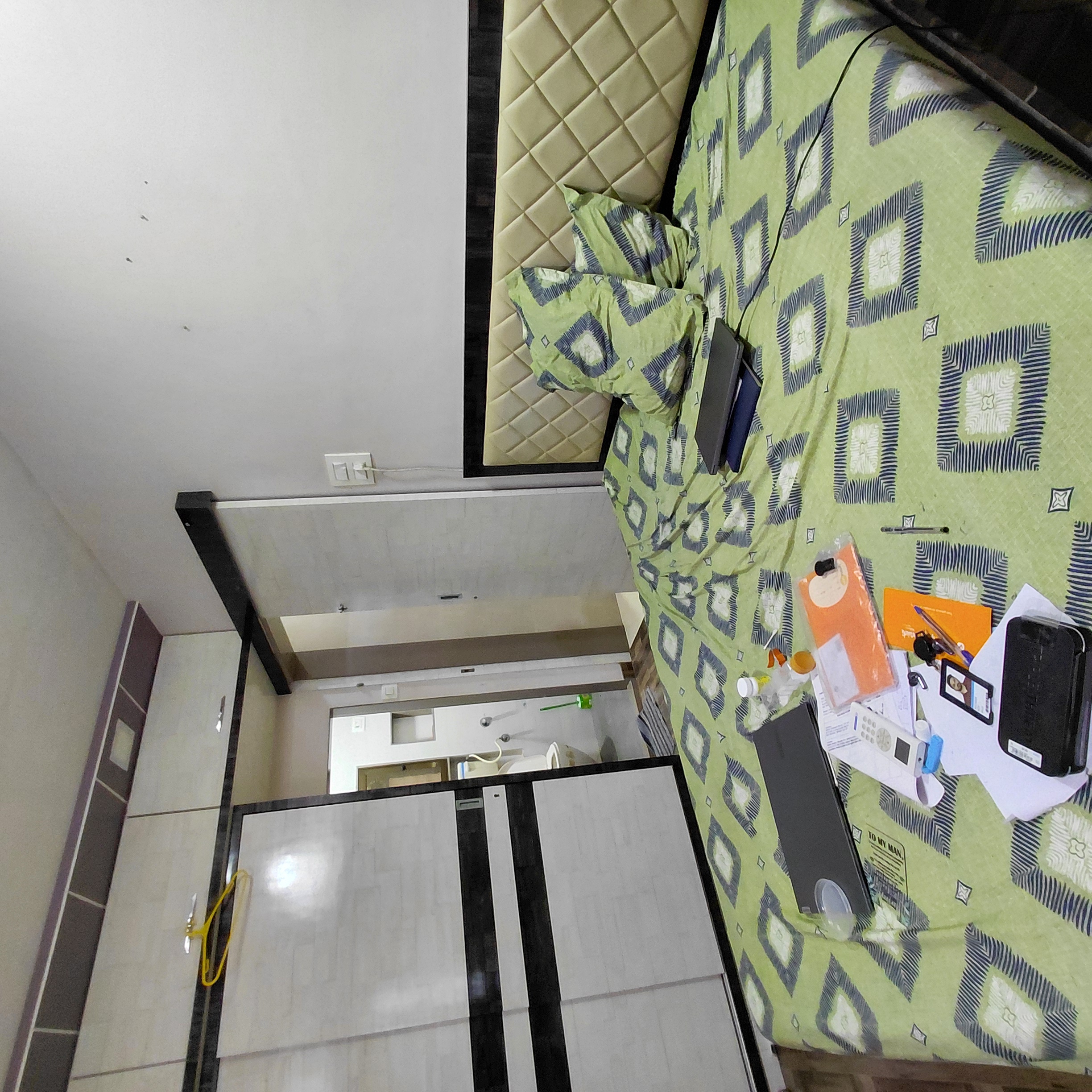 This furnished one-bedroom Flats in Goregaon East, Mumbai, offers a comfortable living space with a community view from its sixth-floor position in the Kshitij CHS project.