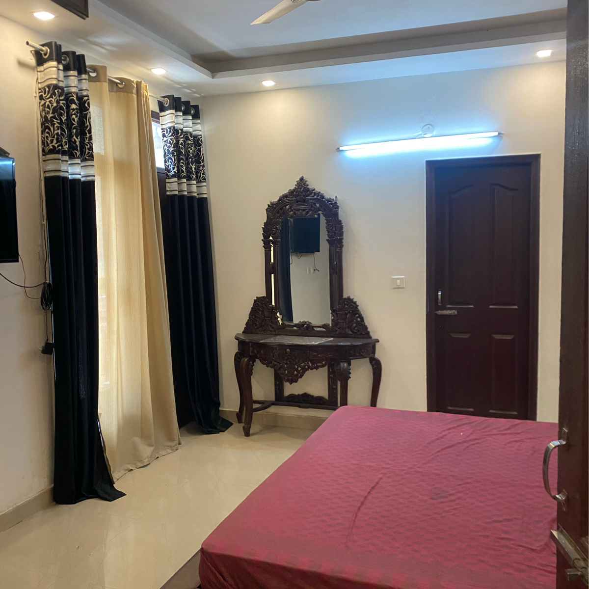 A tranquil escape with a beautiful garden view awaits you in Zirakpur Lohgarh area, offering a furnished 3-bedroom, 3-bathroom Flats for rent at 35 thousand per month.