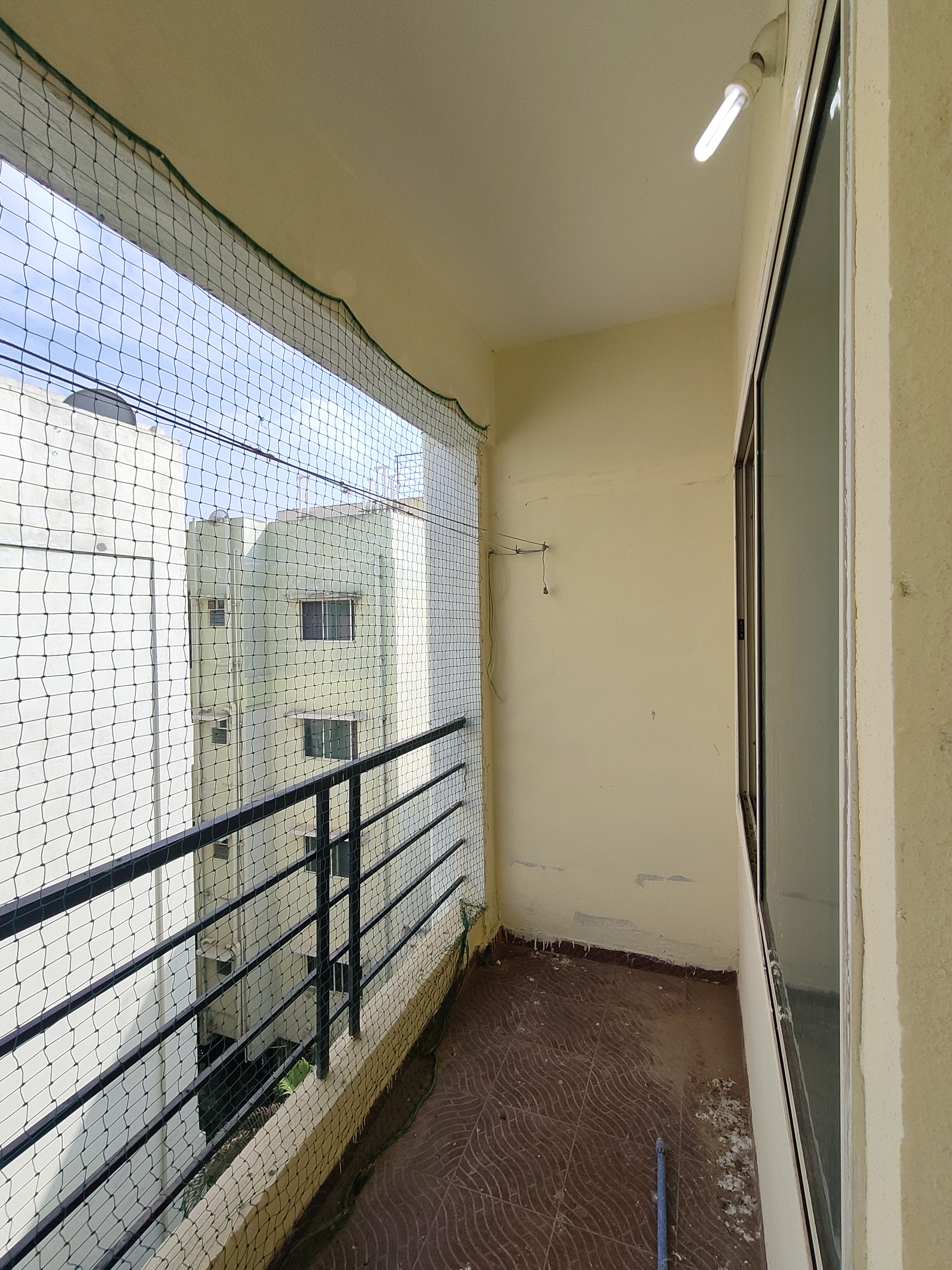 • Spanning 1200 Square Feet, this semi-furnished home is located on the first floor of a four-story building and offers a pleasant road view from its balcony.