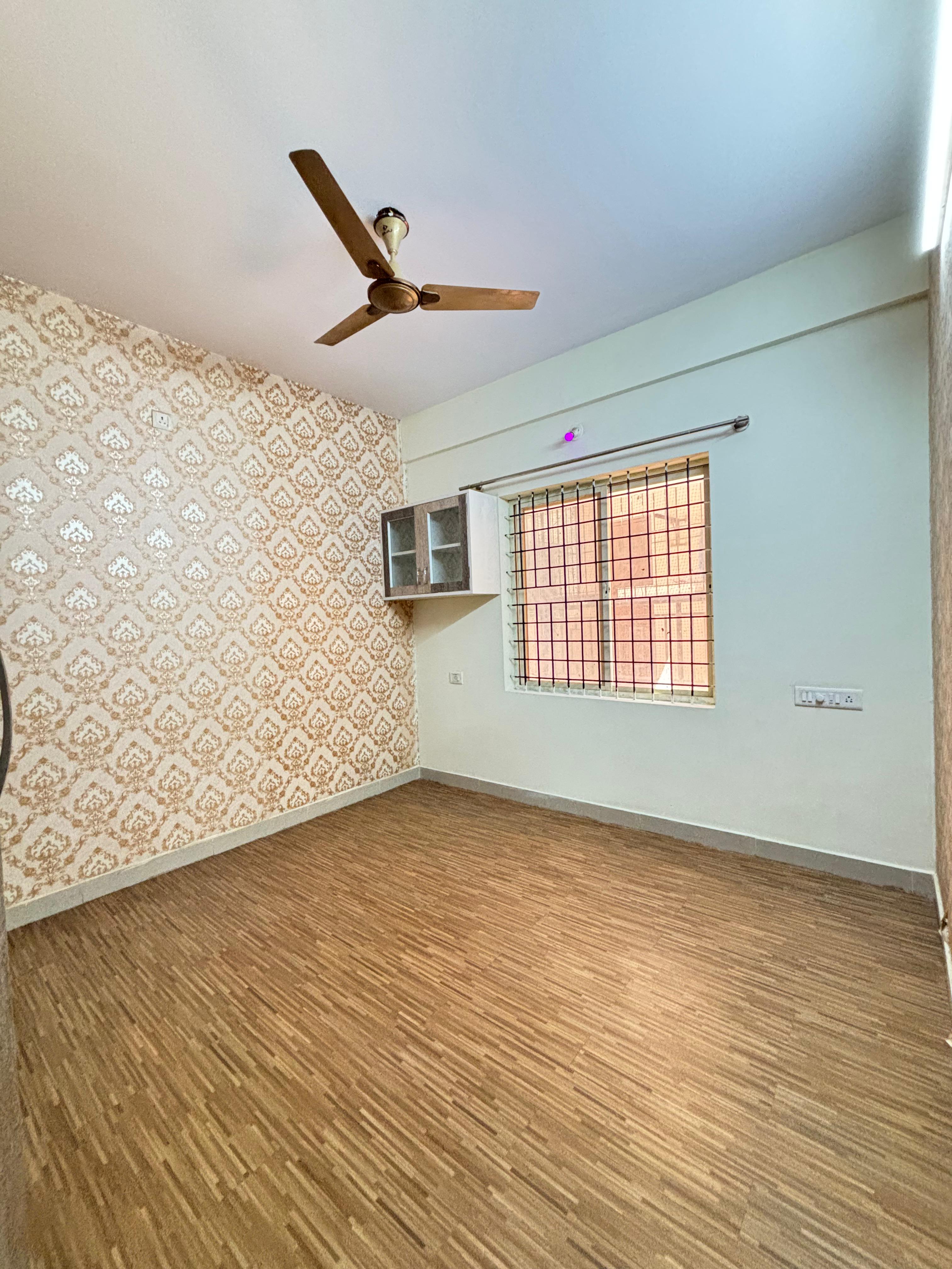 A well-ventilated 1-bedroom, 1-bathroom builder floor is available for rent in the prime location of GM Palya, Bangalore, offering a comfortable and practical living experience for families.