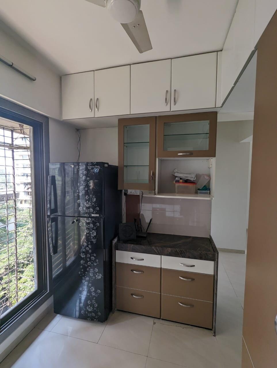 This furnished 3-bedroom Flats in Vile Parle East, Mumbai, offers 1000 square feet of living space with a lovely garden view.