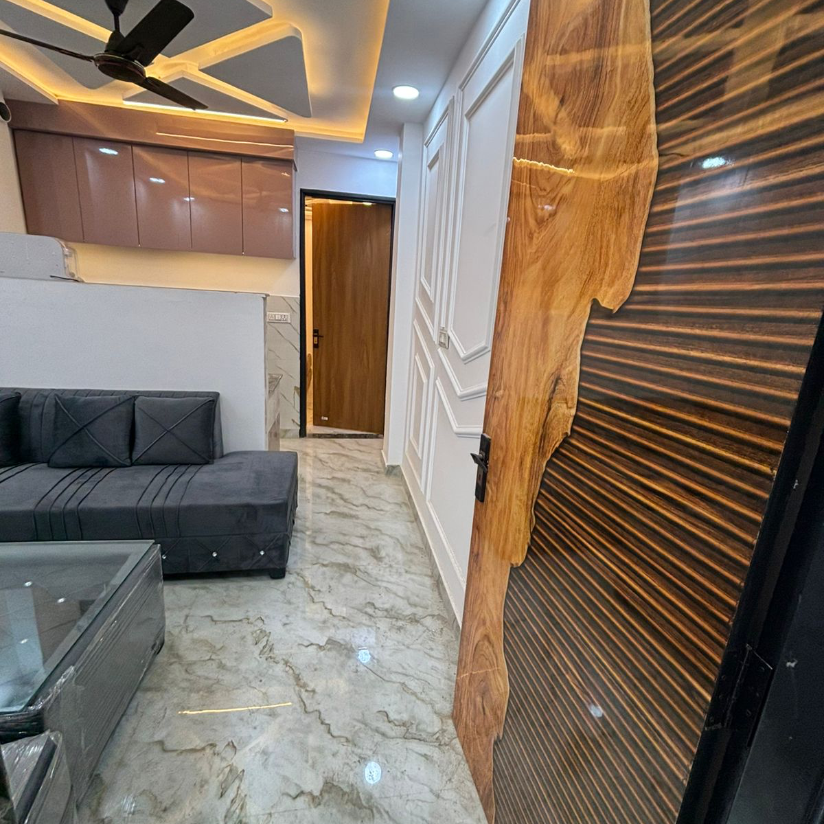 This furnished 2-bedroom, 1-bathroom builder floor for rent in Dwarka Mor, Delhi, offers a practical and comfortable living space ideal for families.