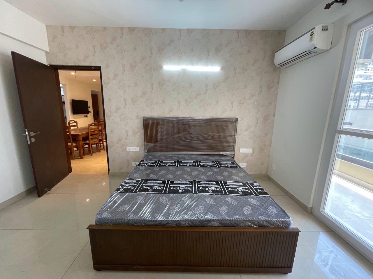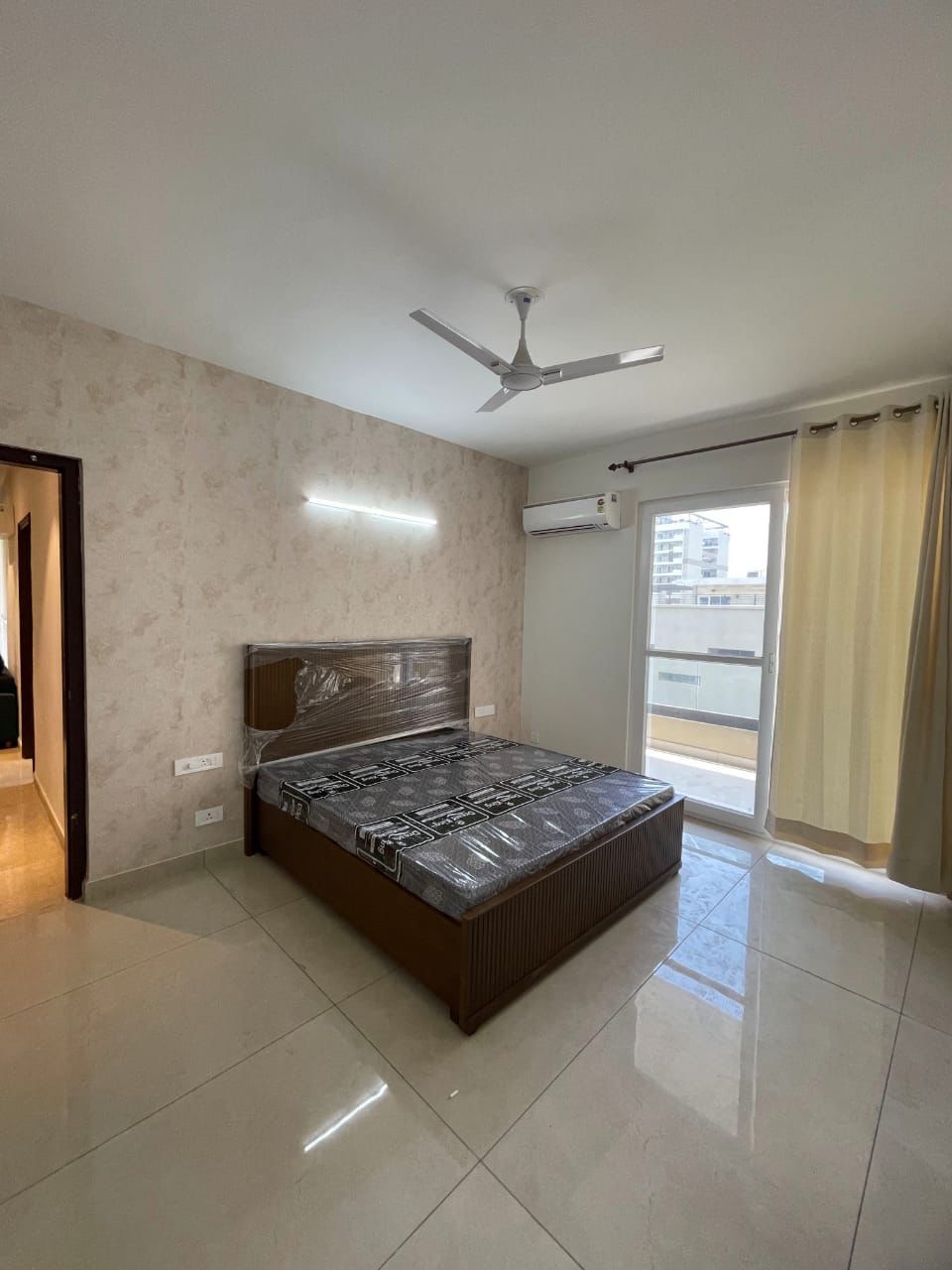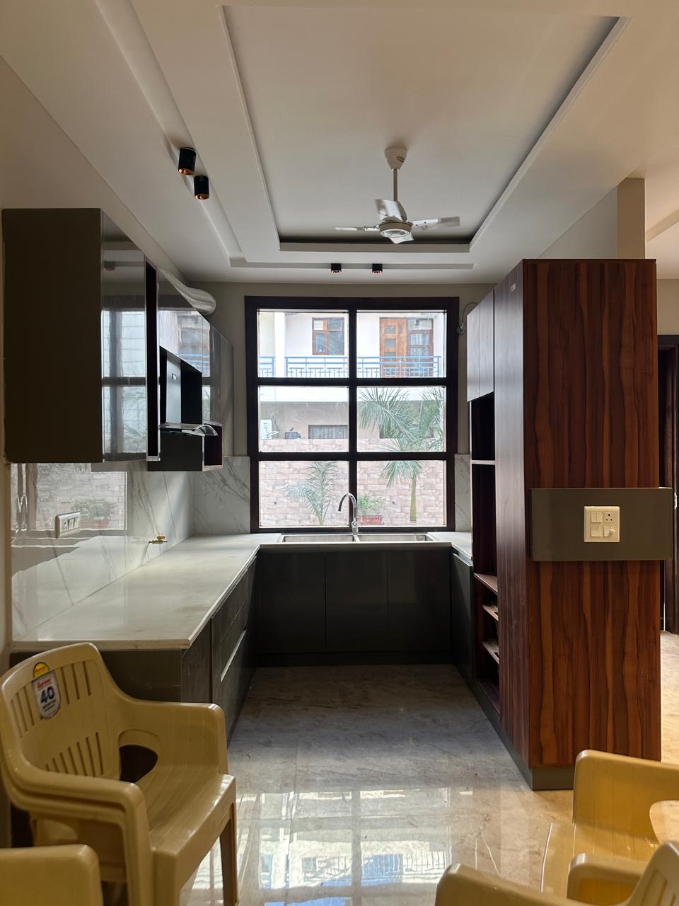 This furnished three-bedroom, three-bathroom Flats on International Airport Road in Zirakpur offers a sophisticated lifestyle with 1900 square feet of living space and park views.