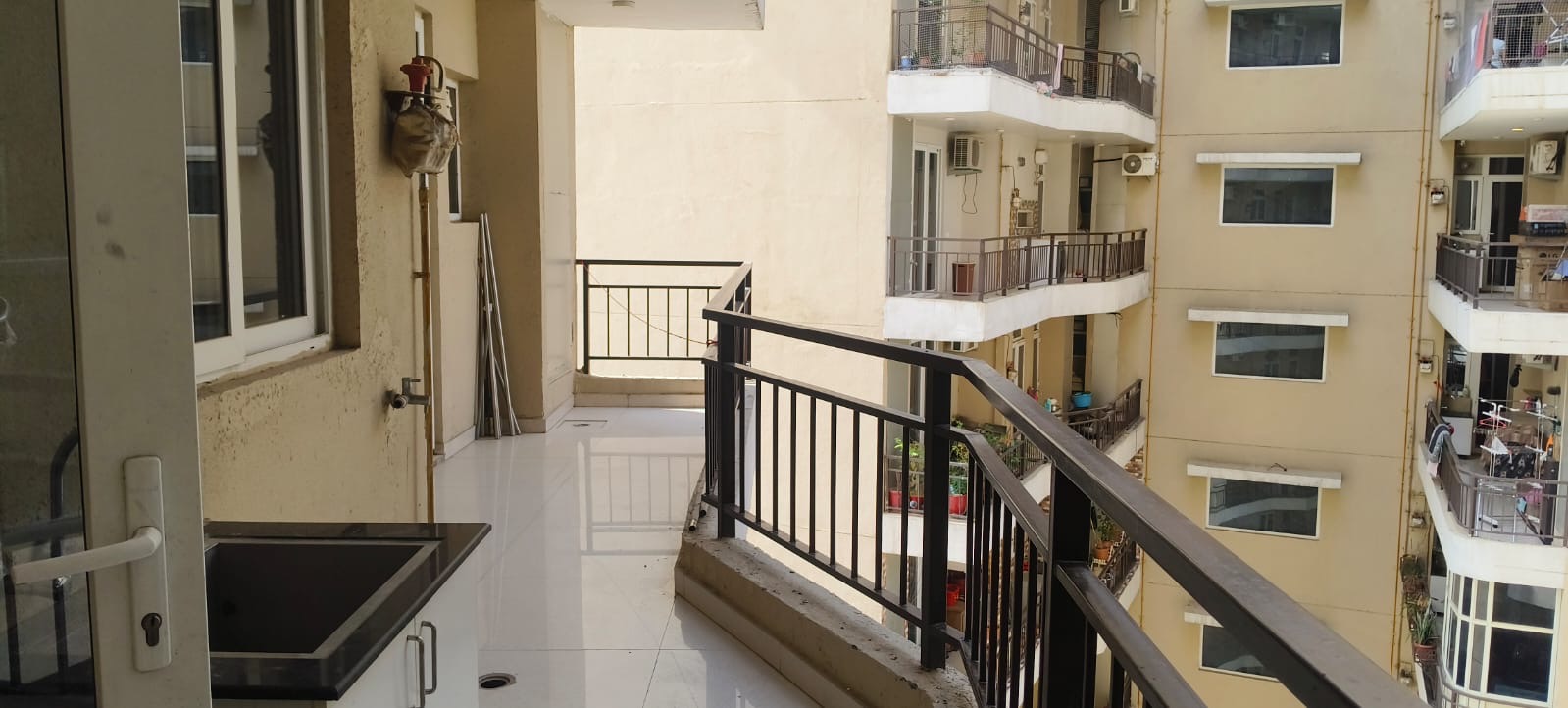This furnished 700 square foot Flats in High Ground, Zirakpur, offers a comfortable living space on the first floor of a three-story building.