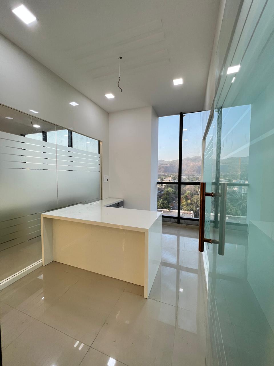 This furnished 1200 square feet office space, priced at 1.95 crore, is situated on the 10th floor and offers a clear road view, providing excellent visibility and natural light.