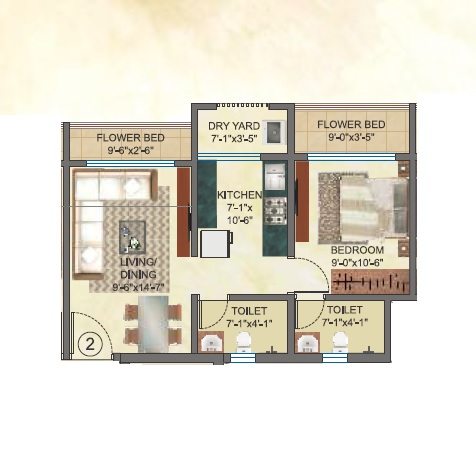Welcome to your new home in Mira Road, Thane, a newly built 1-bedroom, 2-bathroom Flats offering 450 square feet of unfurnished living space with a lovely garden view.