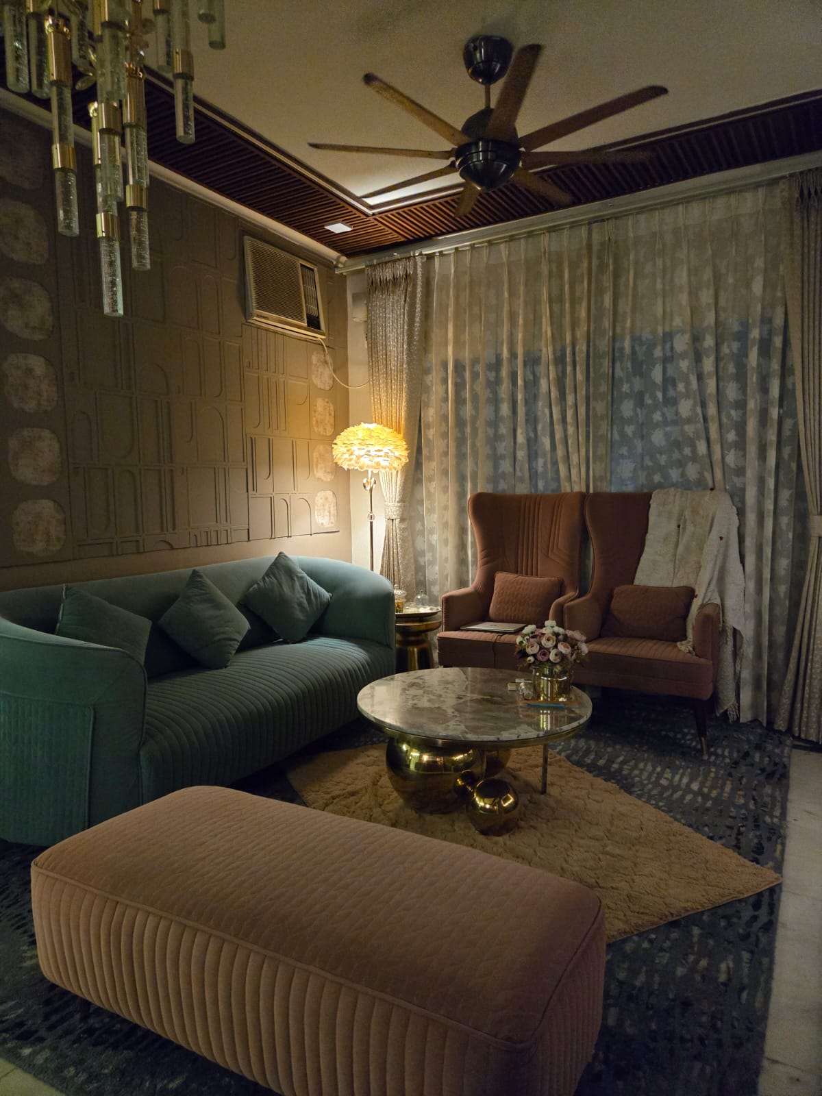 • This semi-furnished home spans 2200 Square Feet, offering ample living space with tasteful interiors and a road view from the third floor