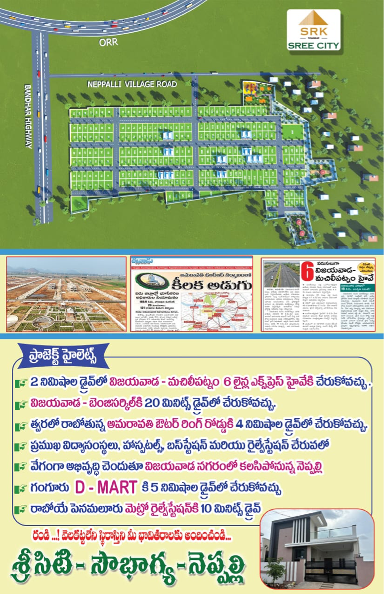 Secure your future with plot number 2 in Kankipadu, Vijayawada, a prime location offering a tranquil garden view and a Vastu-compliant design perfect for families.