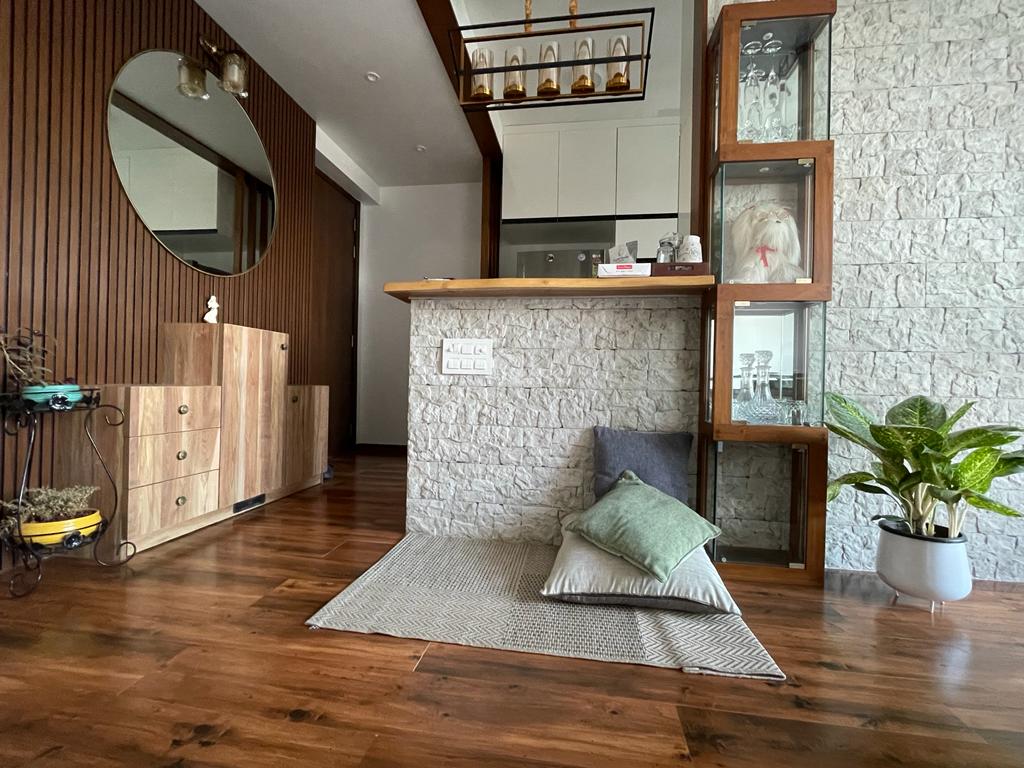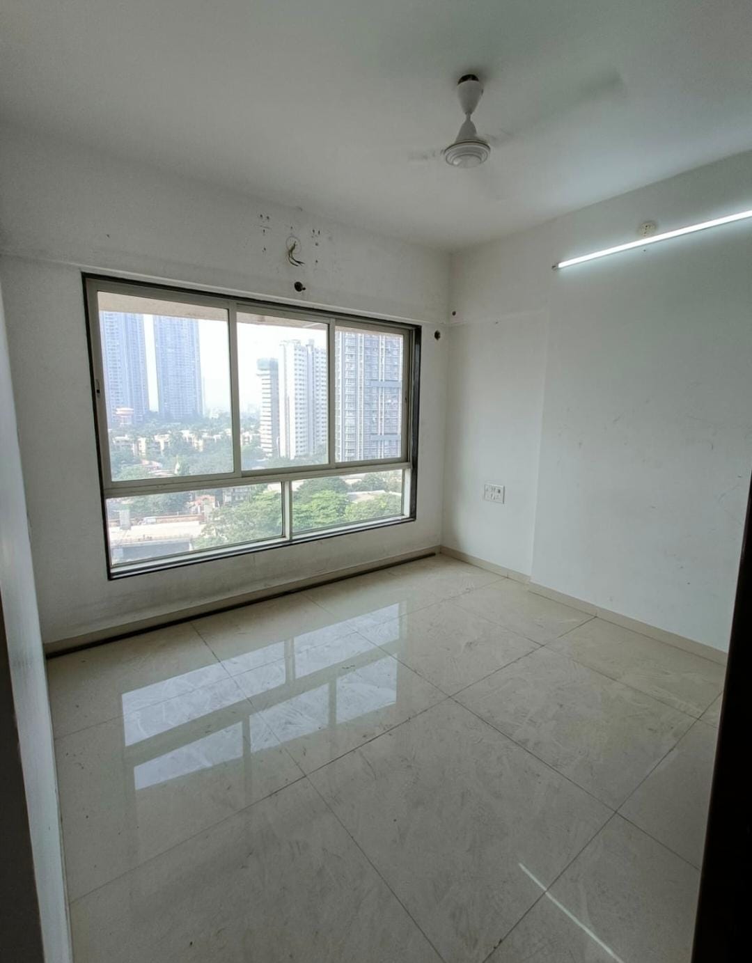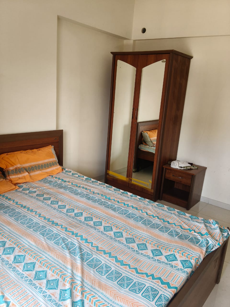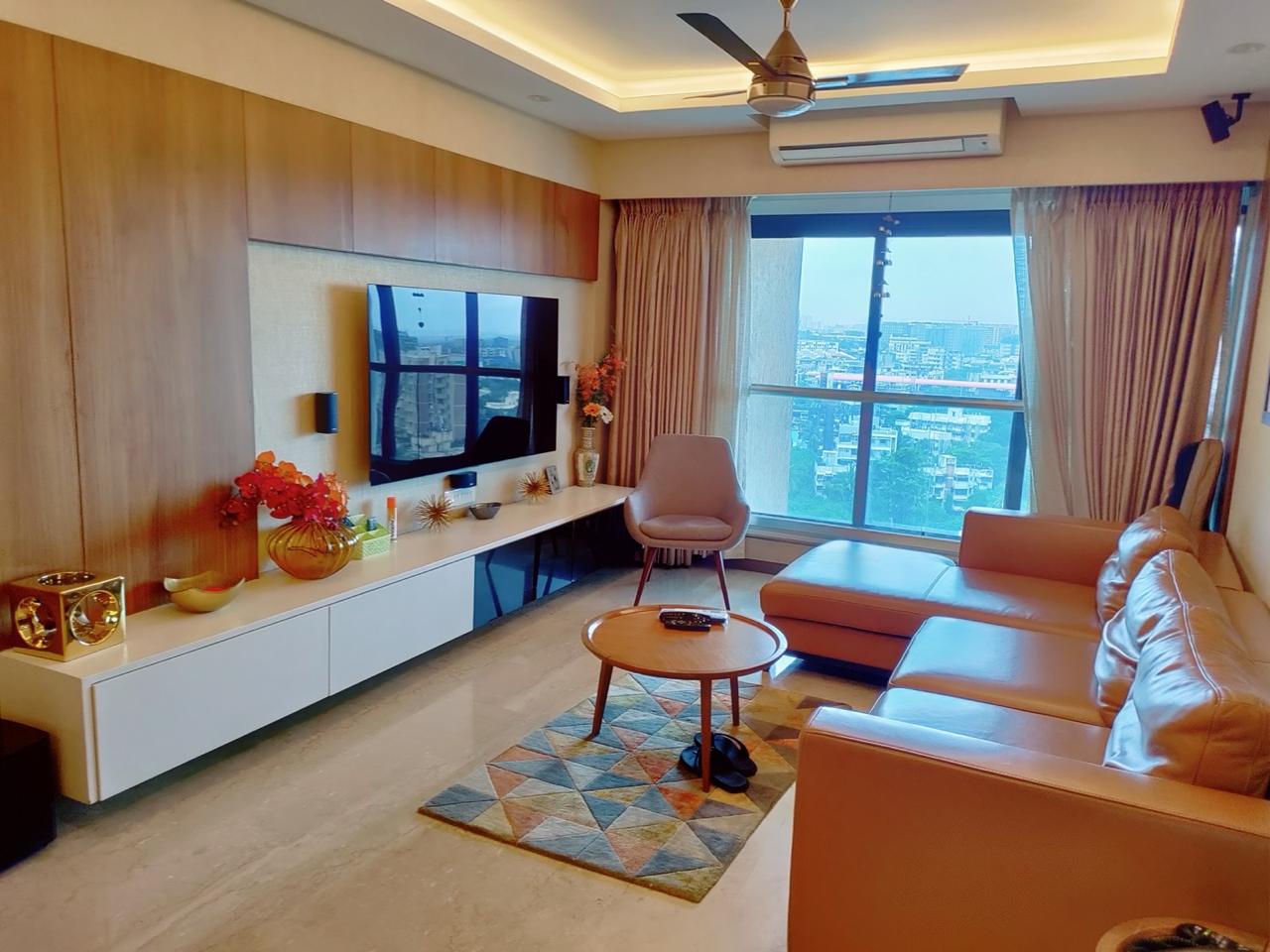 This semi-furnished two-bedroom, two-bathroom Flats in Chandak Stella, Goregaon West, Mumbai, offers a peaceful garden view from its seventh-floor position in a twenty-story building, providing a serene living experience for families, bachelors, or females only.
