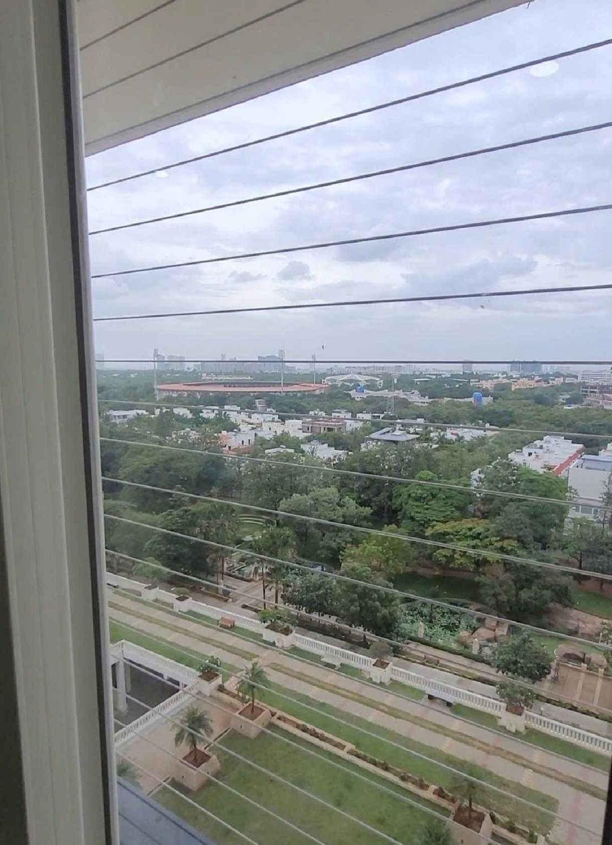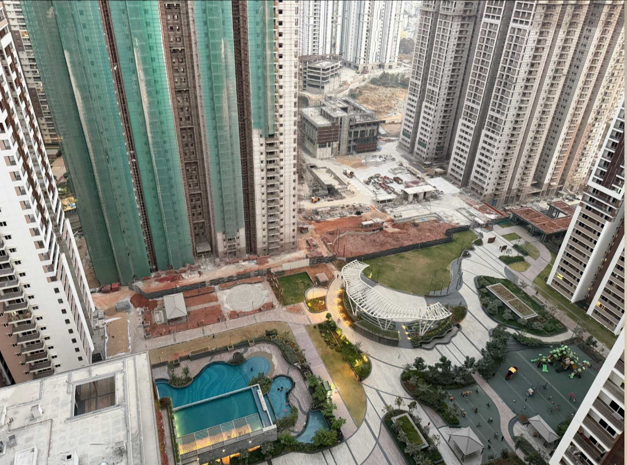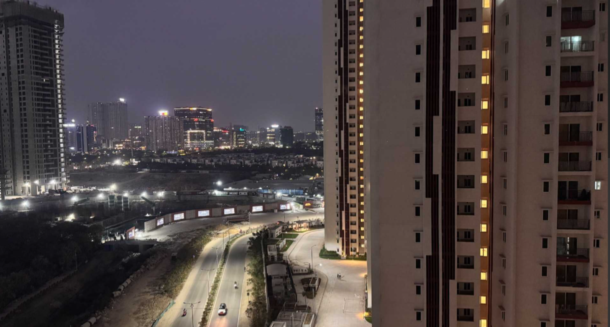 This semi-furnished 3-bedroom, 3-bathroom Flats in Gachibowli, Hyderabad, offers a comfortable and stylish living space with a community view from the 1st floor of the 12-story Vertex Panache project.
