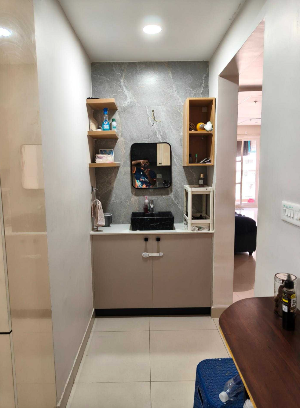 • This newly built residence, located on the 6th floor of the 15-story Niharika Skyline project, boasts a community view