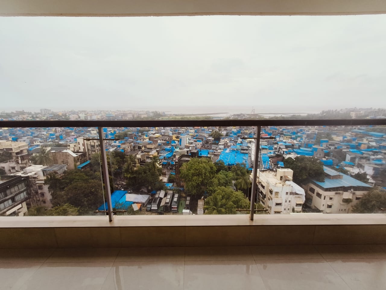 This furnished 3-bedroom, 4-bathroom Flats in Dheeraj Insignia, Bandra East, Mumbai, offers a serene living experience with a garden view from its 15th-floor balcony.