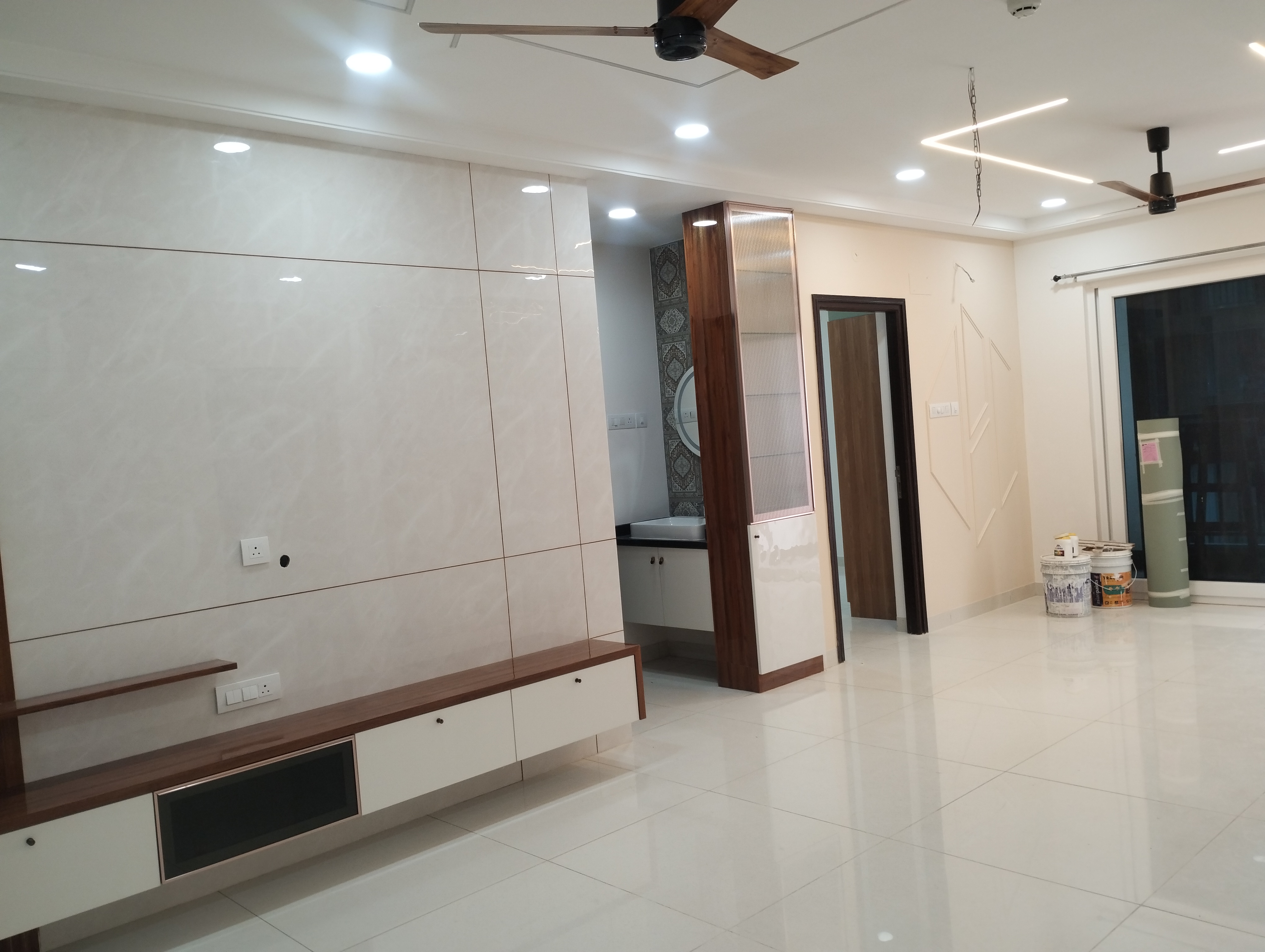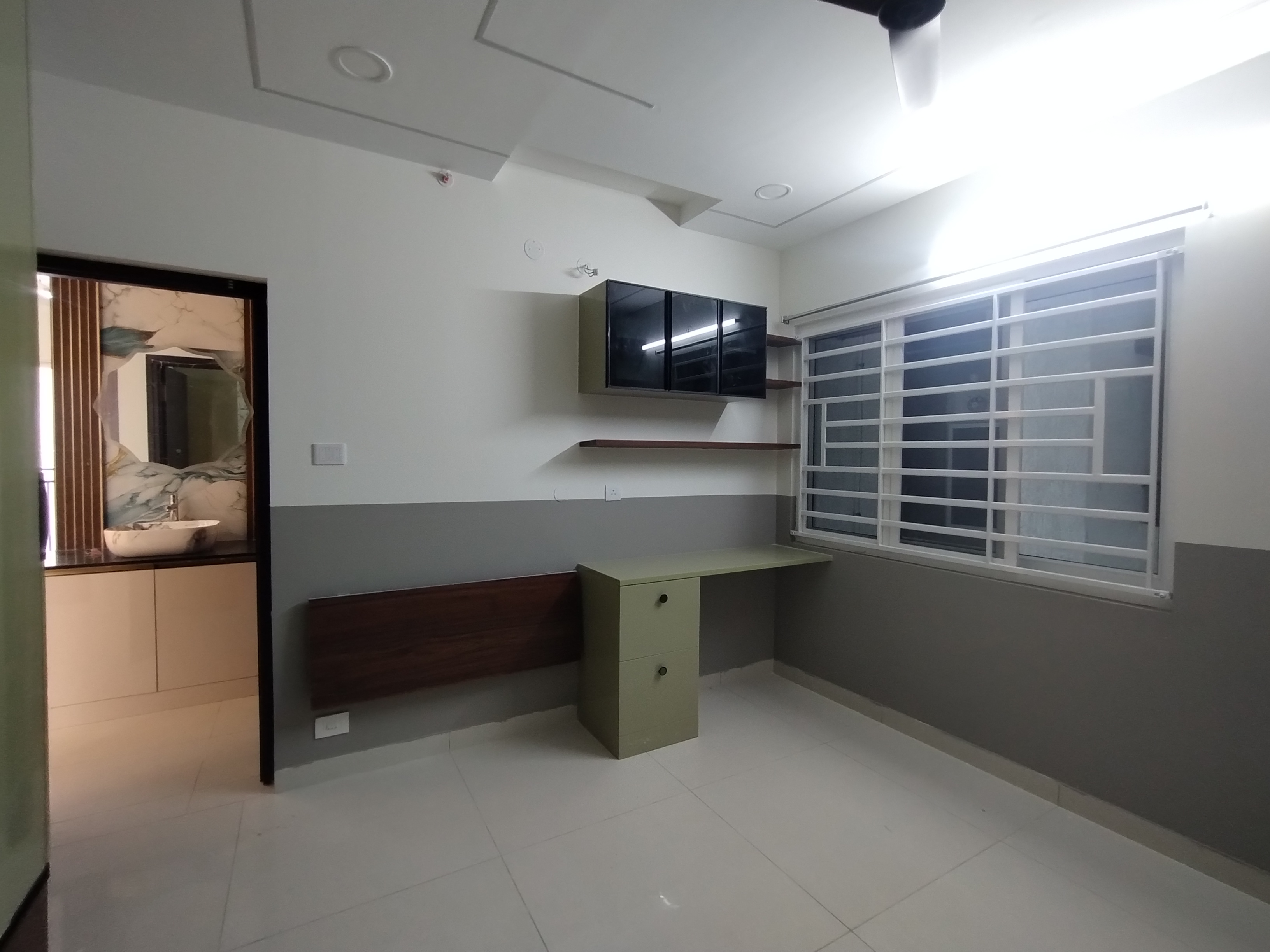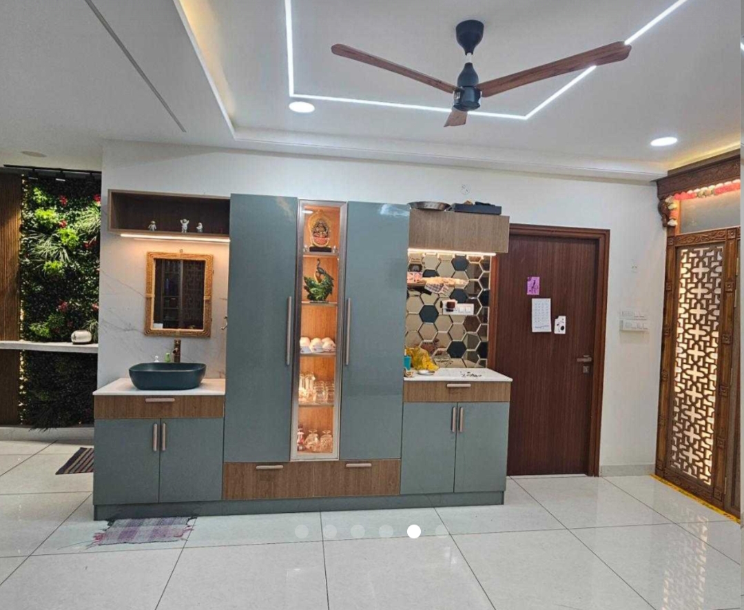 • Spanning 2765 square feet on the 14th floor of the 20-story Aparna Sarovar Zicon, this semi-furnished residence features a soothing garden view.