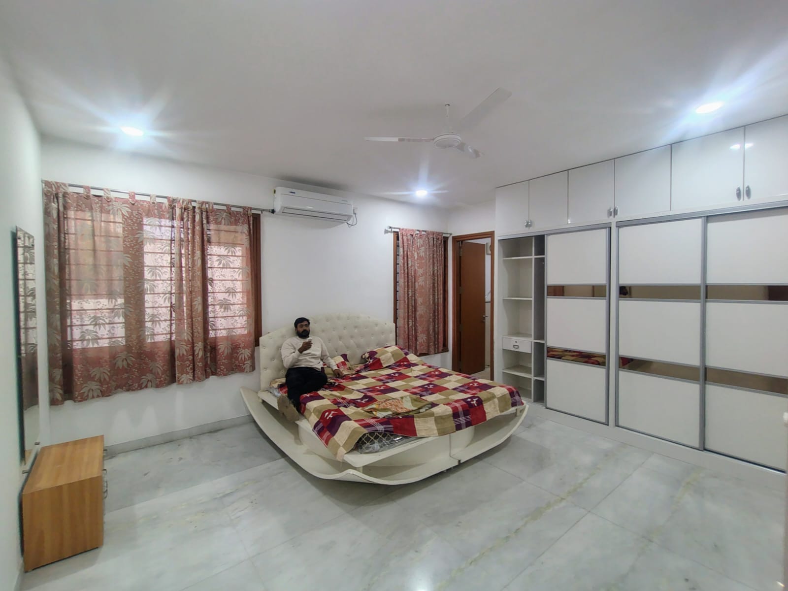 This expansive 4-bedroom, 4-bathroom villa in Osman Nagar, Hyderabad, presents an excellent rental opportunity, offering a vast 4230 square feet of living space.