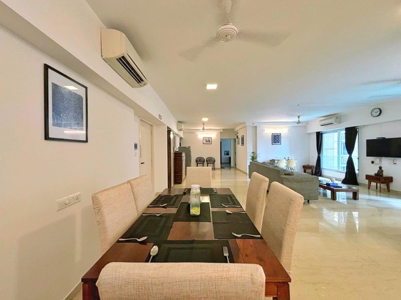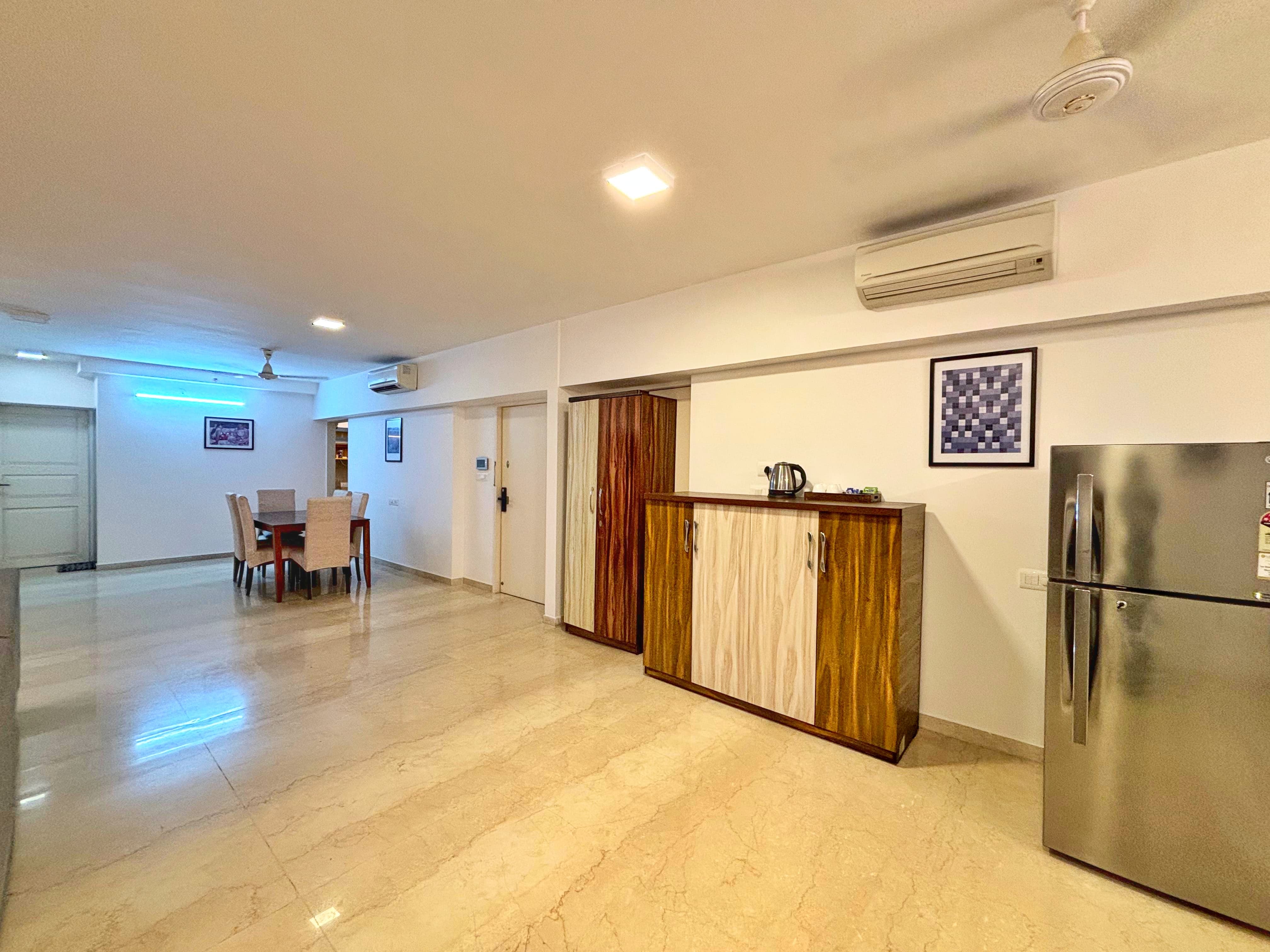 Experience elevated living in this furnished four-bedroom, four-bathroom Flats located in Bandra East, Mumbai, offering a spacious 1600 square feet of living space with a serene garden view.