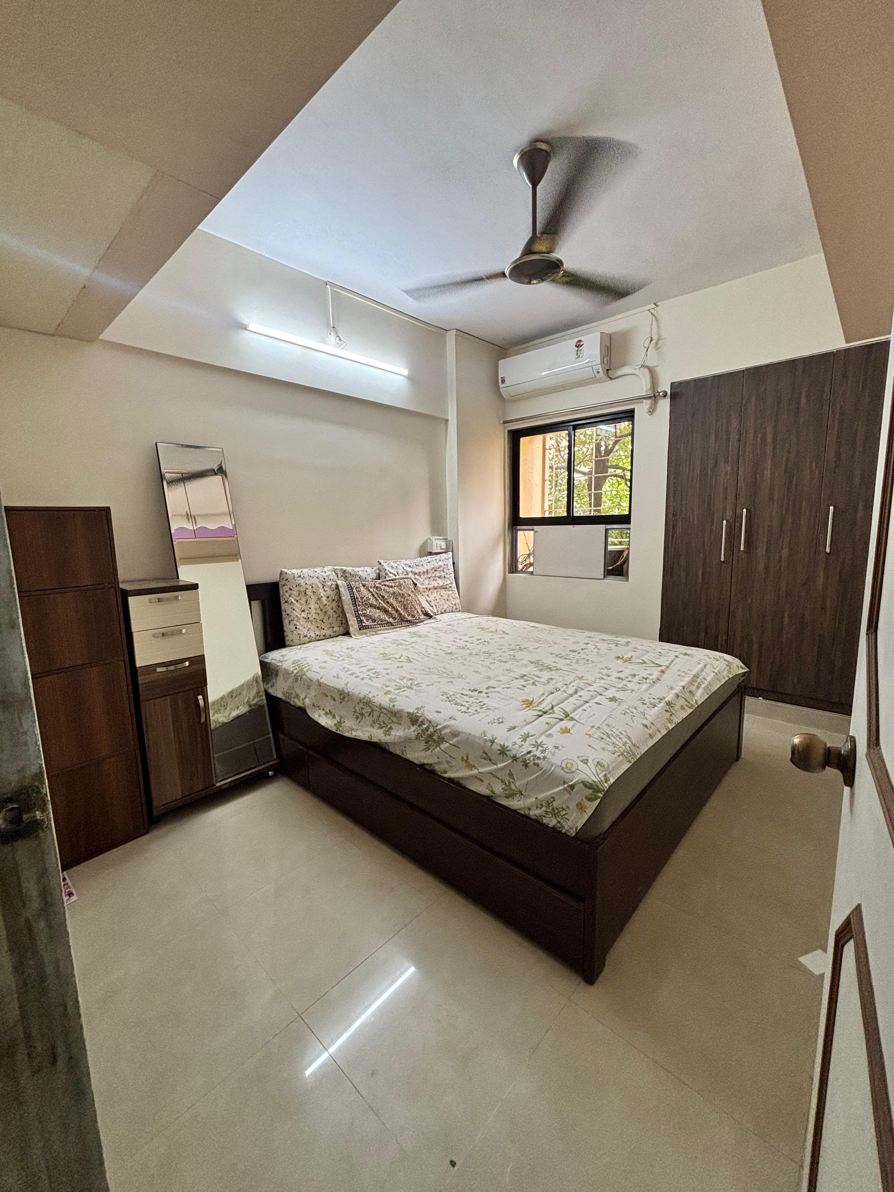 This furnished 2-bedroom, 2-bathroom Flats on the 12th floor of a 20-story building in Bhakti Park Anand Nagar, Thane, offers a comfortable living experience with a pleasant garden view.