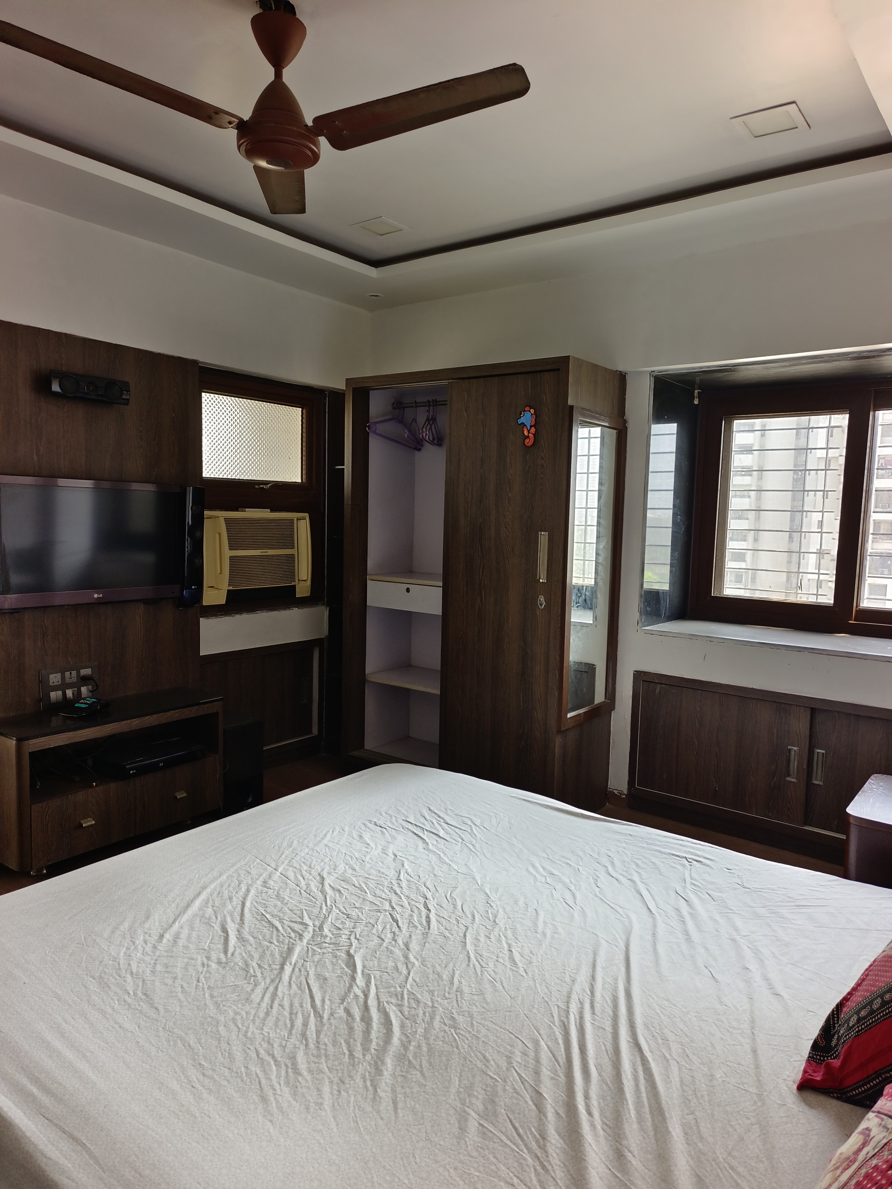 • Situated on the 17th floor of Hiranandani Woodrose, this semi-furnished residence boasts a road view and is designed with Vastu