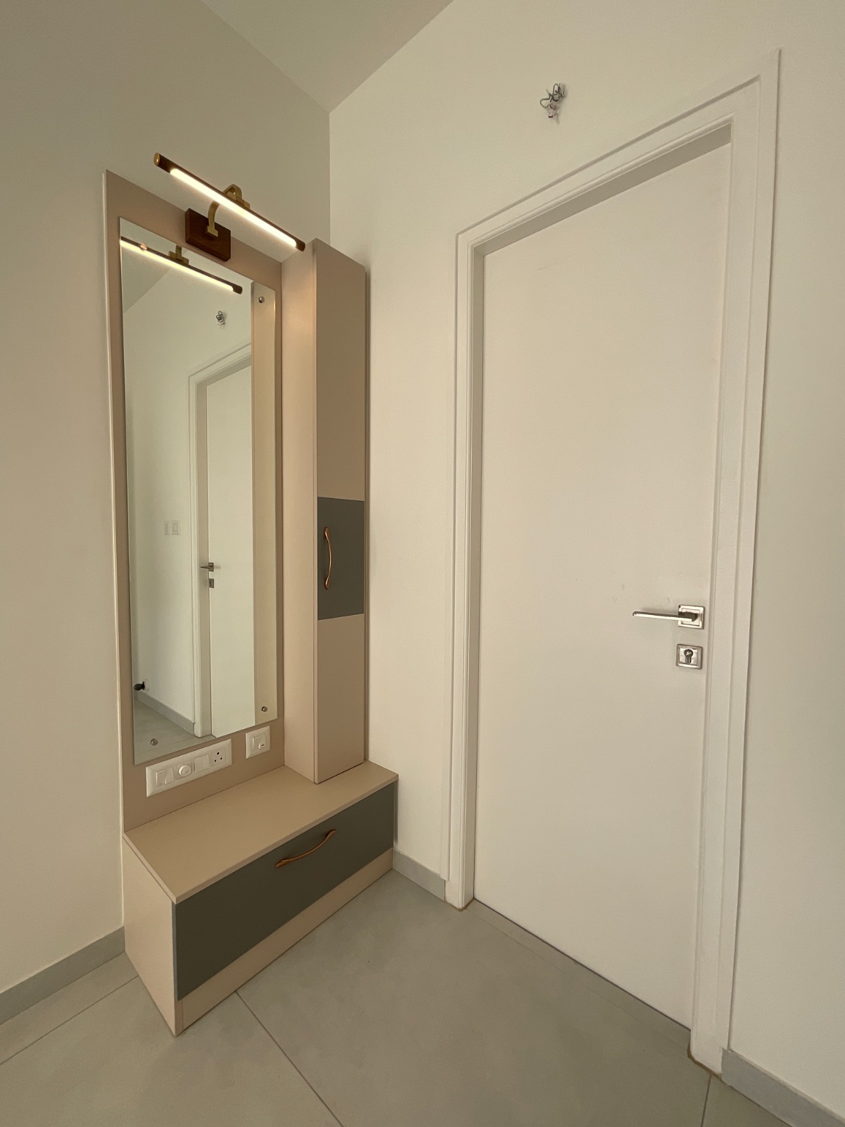 • Spread across 917 square feet on the 10th floor of the Shriram Luxor project, this semi-furnished home offers a