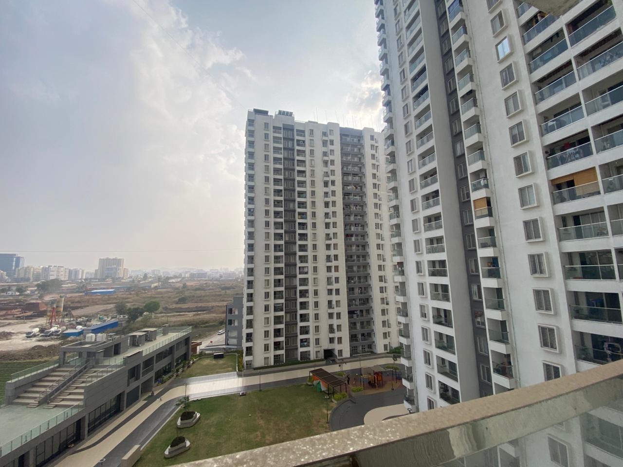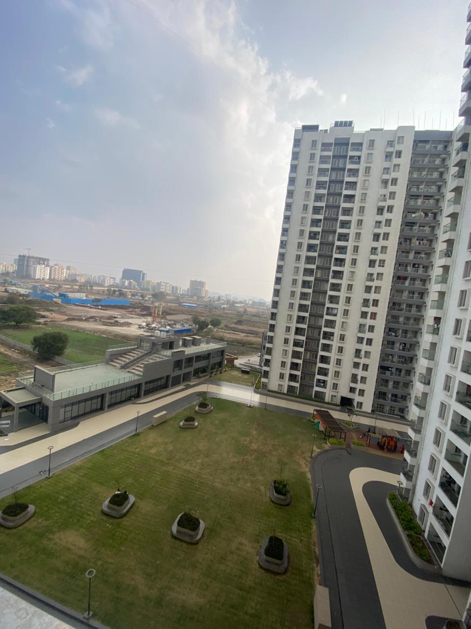 Pharande Puneville in Punawale offers a spacious 3-bedroom, 3-bathroom semi-furnished Flats for rent with a beautiful garden view.