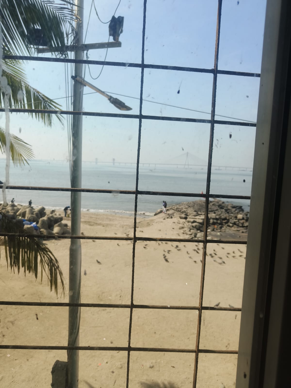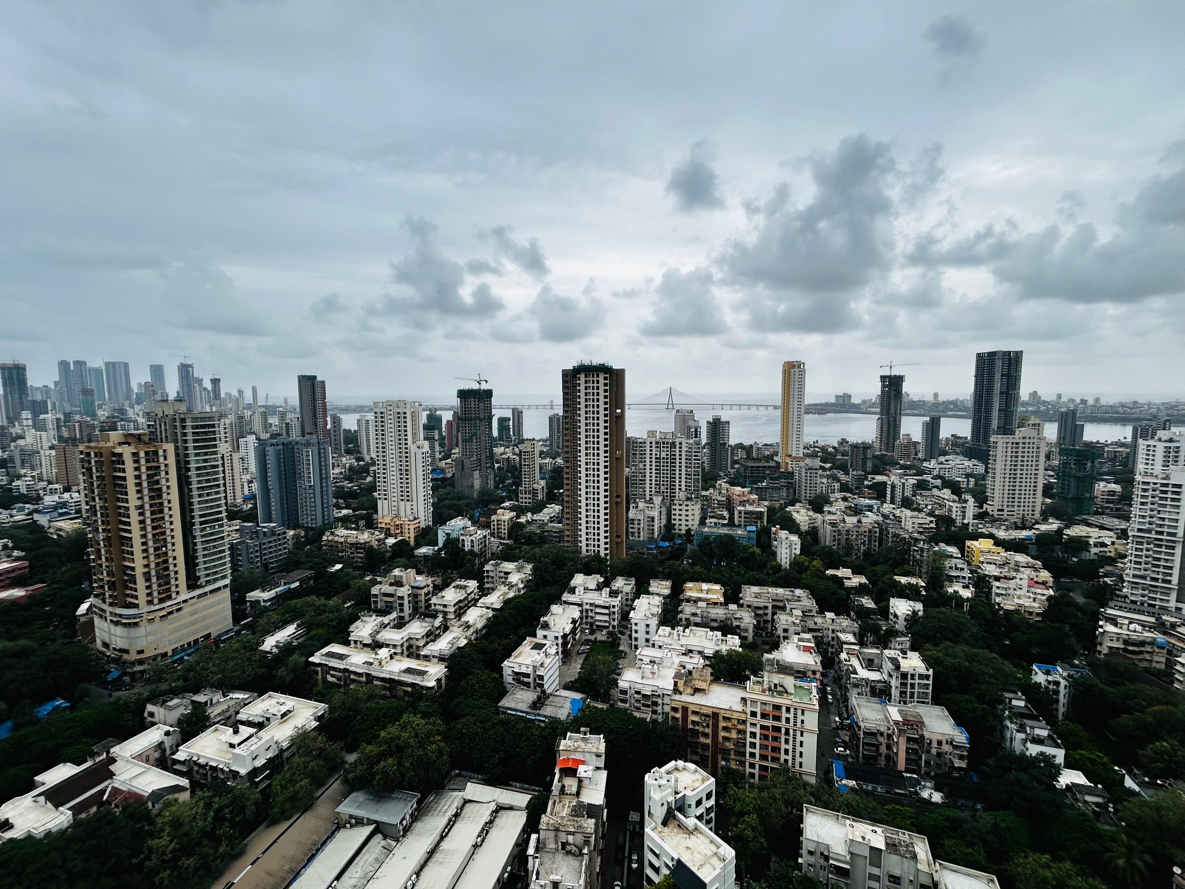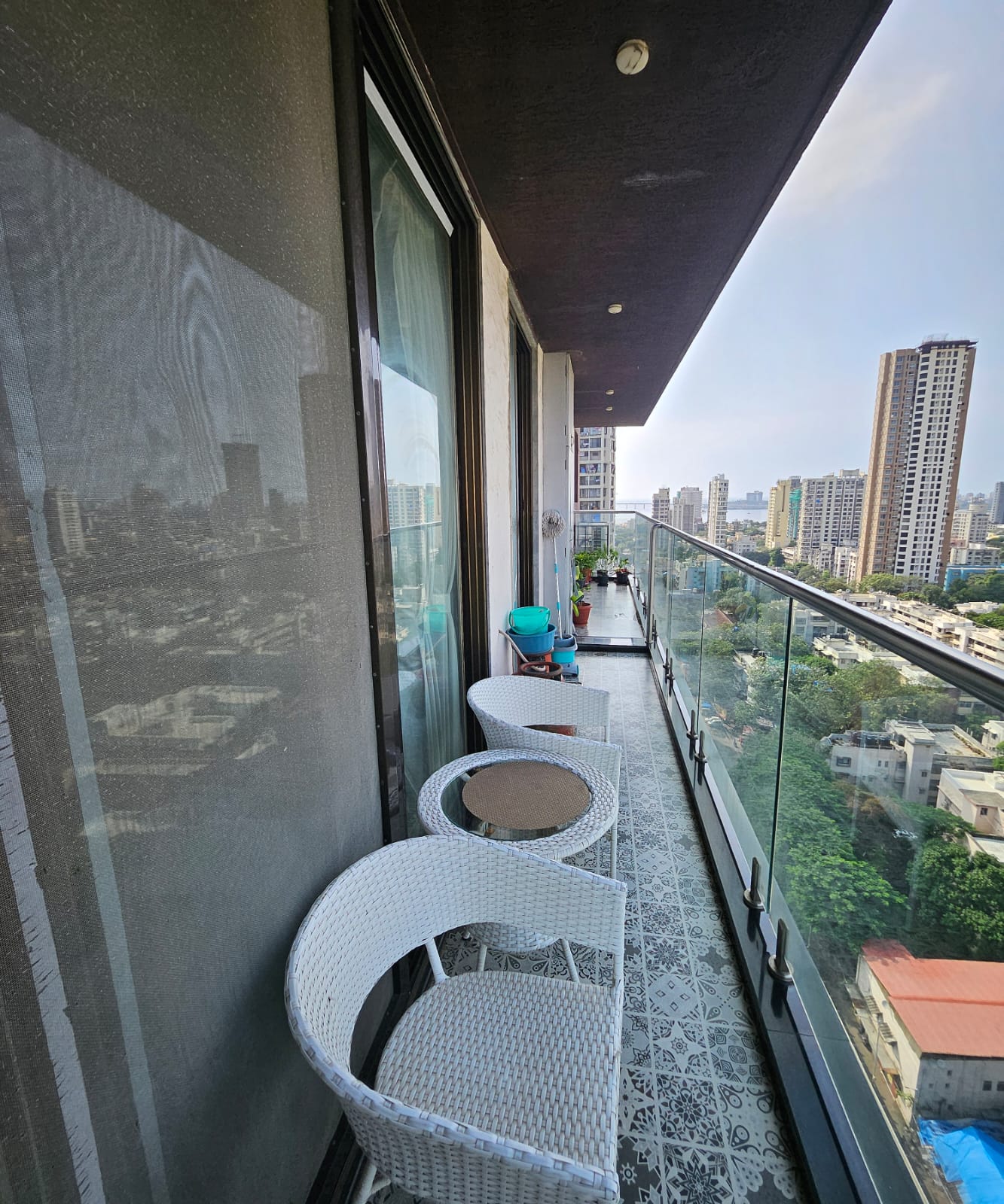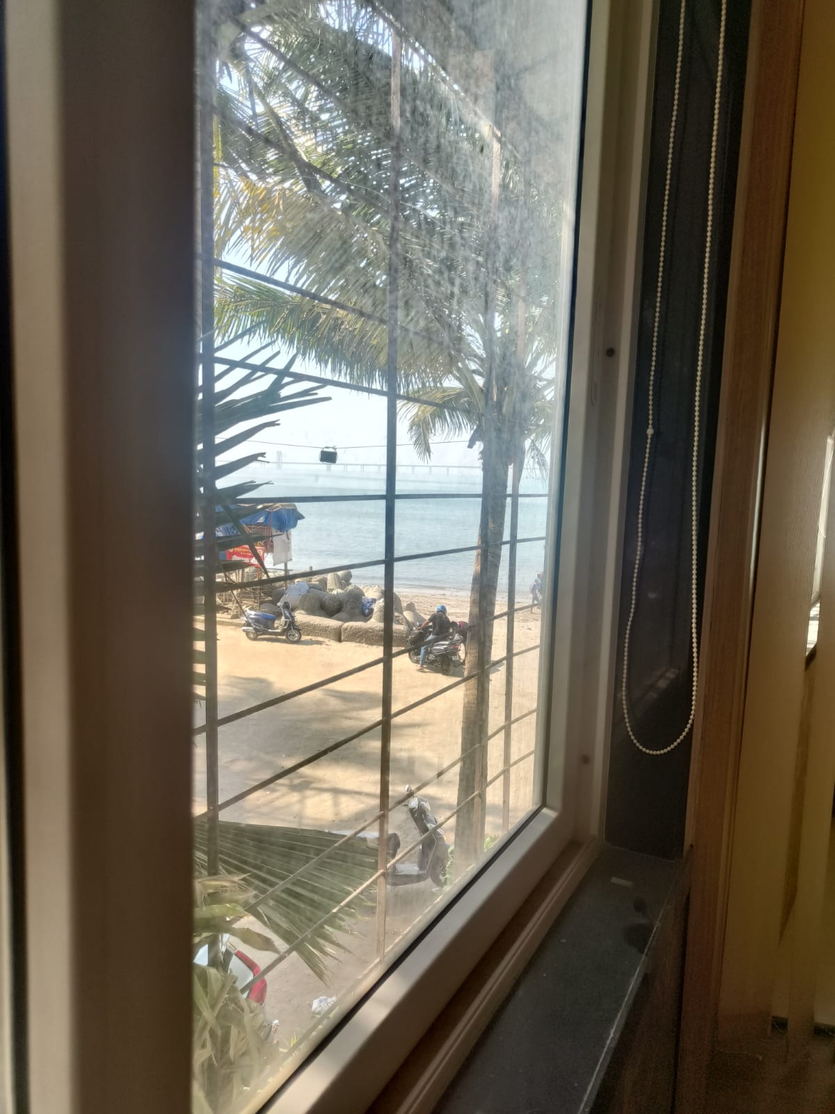 A serene sea view from the third floor of this semi-furnished, two-bedroom, two-bathroom Flats in Mahim, Mumbai, can be yours for 90 thousand per month.
