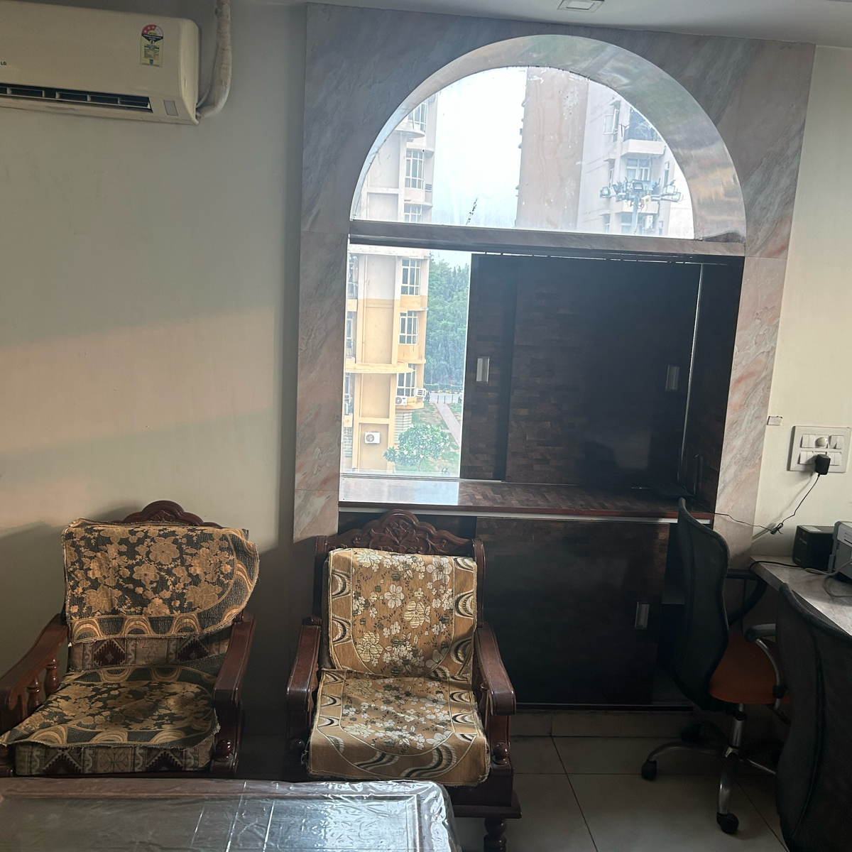 • This semi-furnished 1845 Square Feet space offers a pleasant road view and includes essential