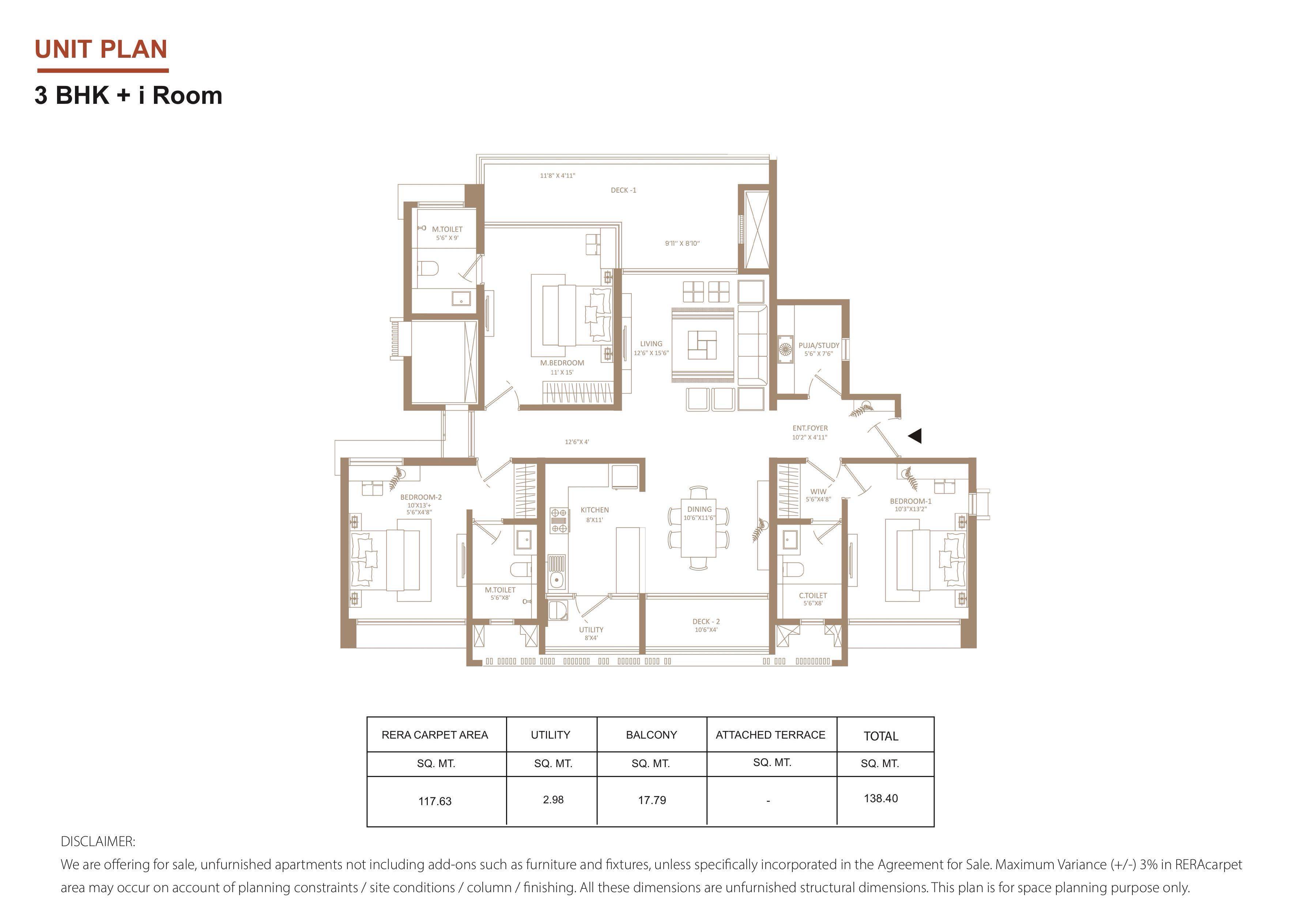 • 1170 Sq.Ft. Carpet Area
