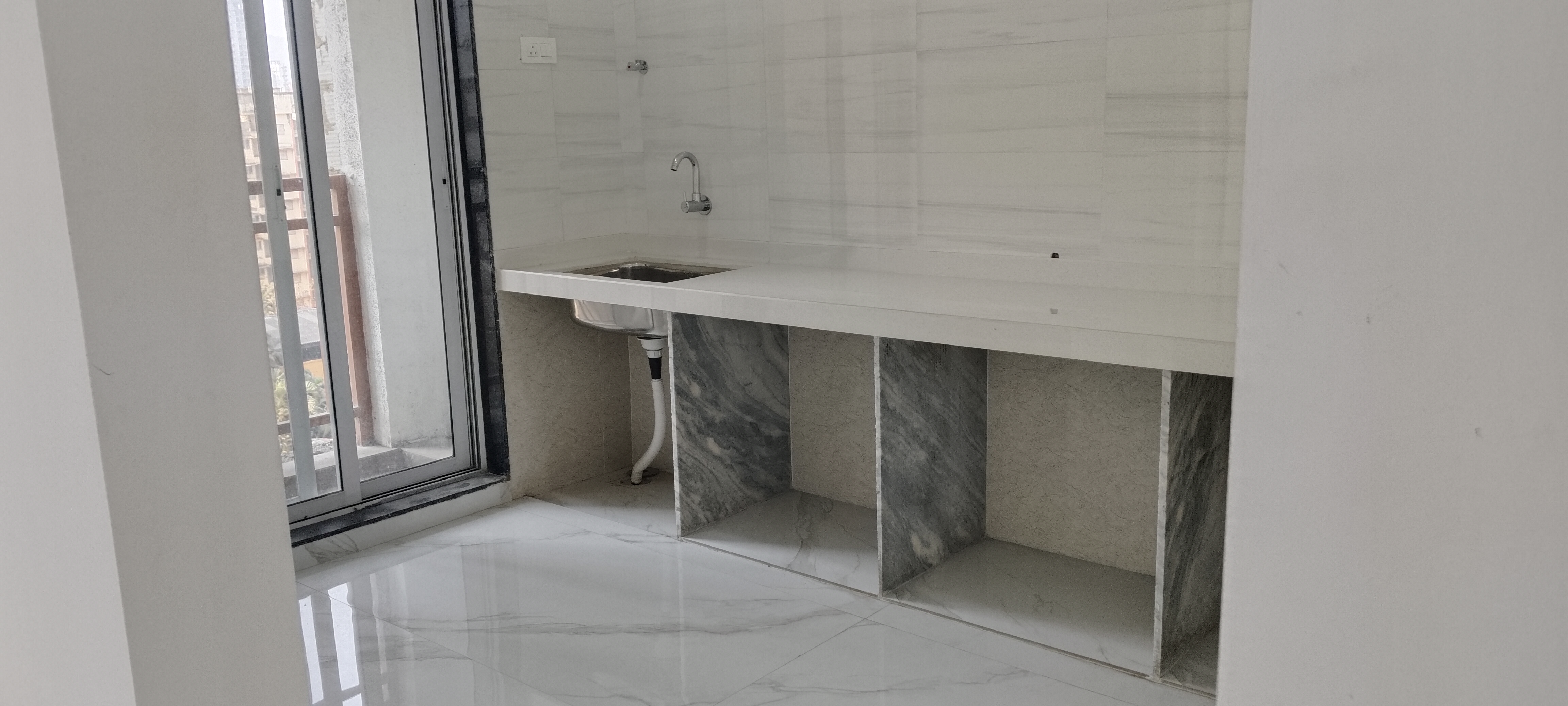 This newly built, unfurnished 1-bedroom Flats in Siddhi Highland Springs, Dhokali, Thane, offers 465 square feet of living space with a road view from its 14th-floor position in a 30-story building.