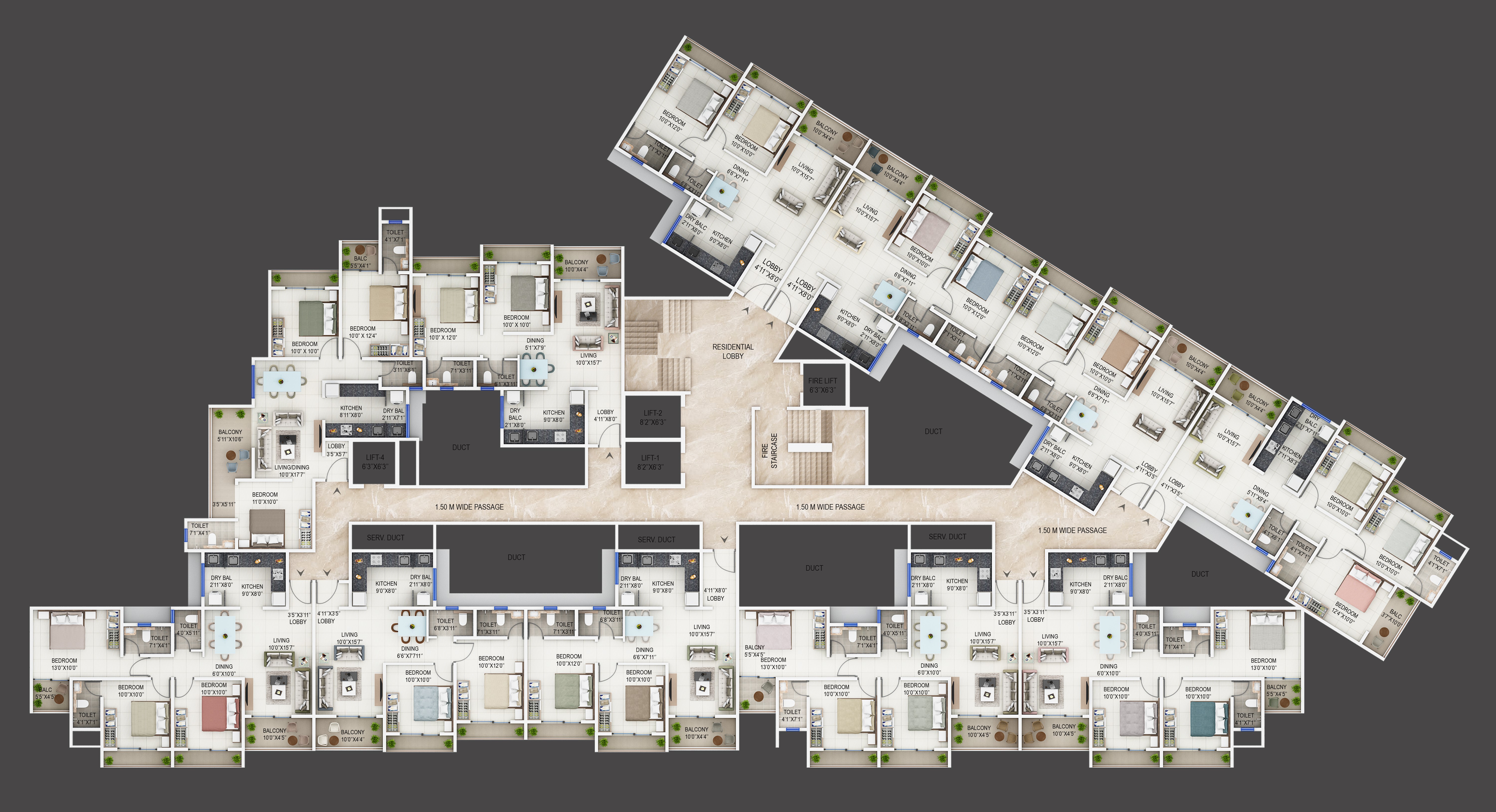 • 889 Sq.Ft. Carpet Area