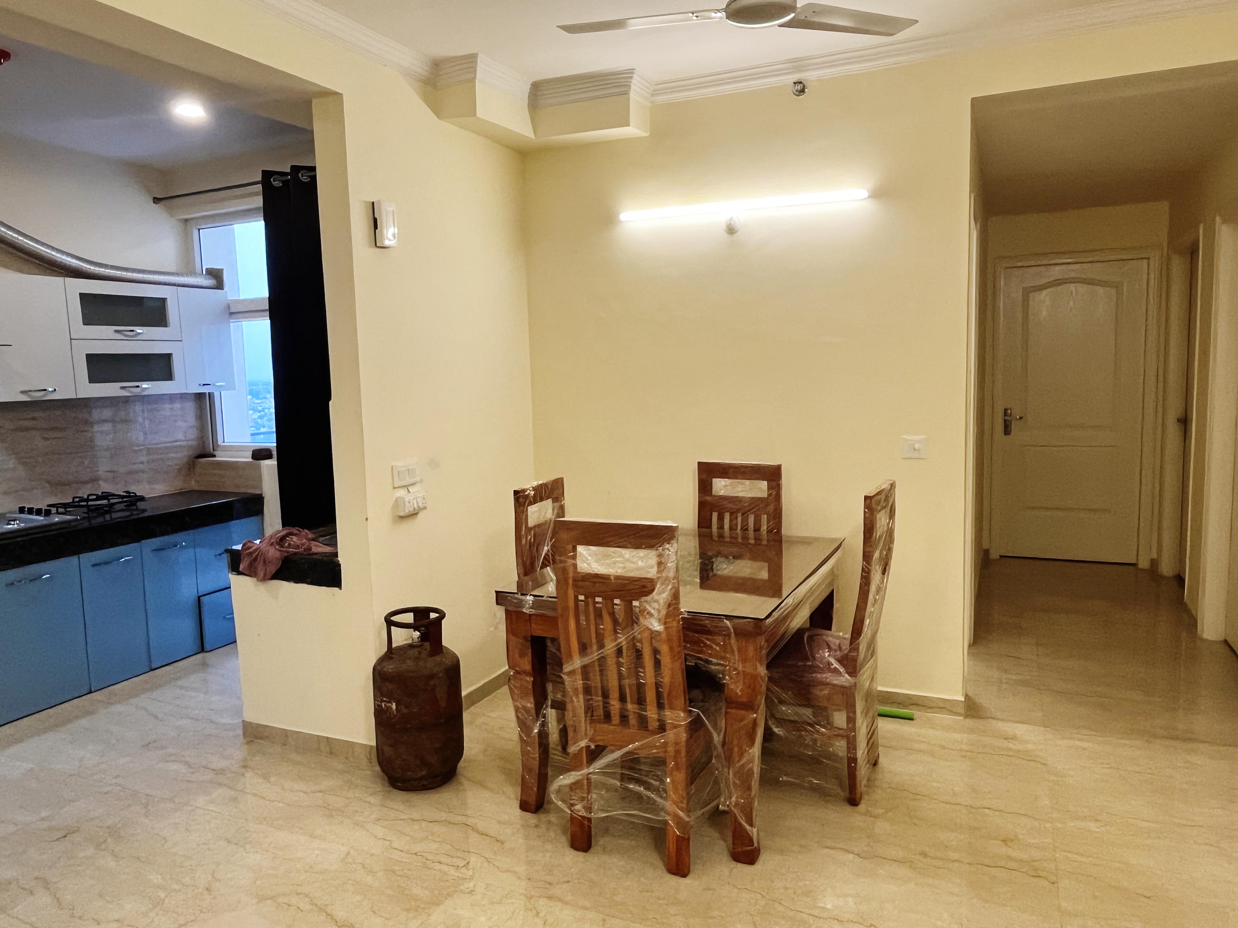• This semi-furnished, three-bedroom, three-bathroom apartment in Ansal Sushant Jeevan Enclave offers a generous 1706 square feet of living space on the