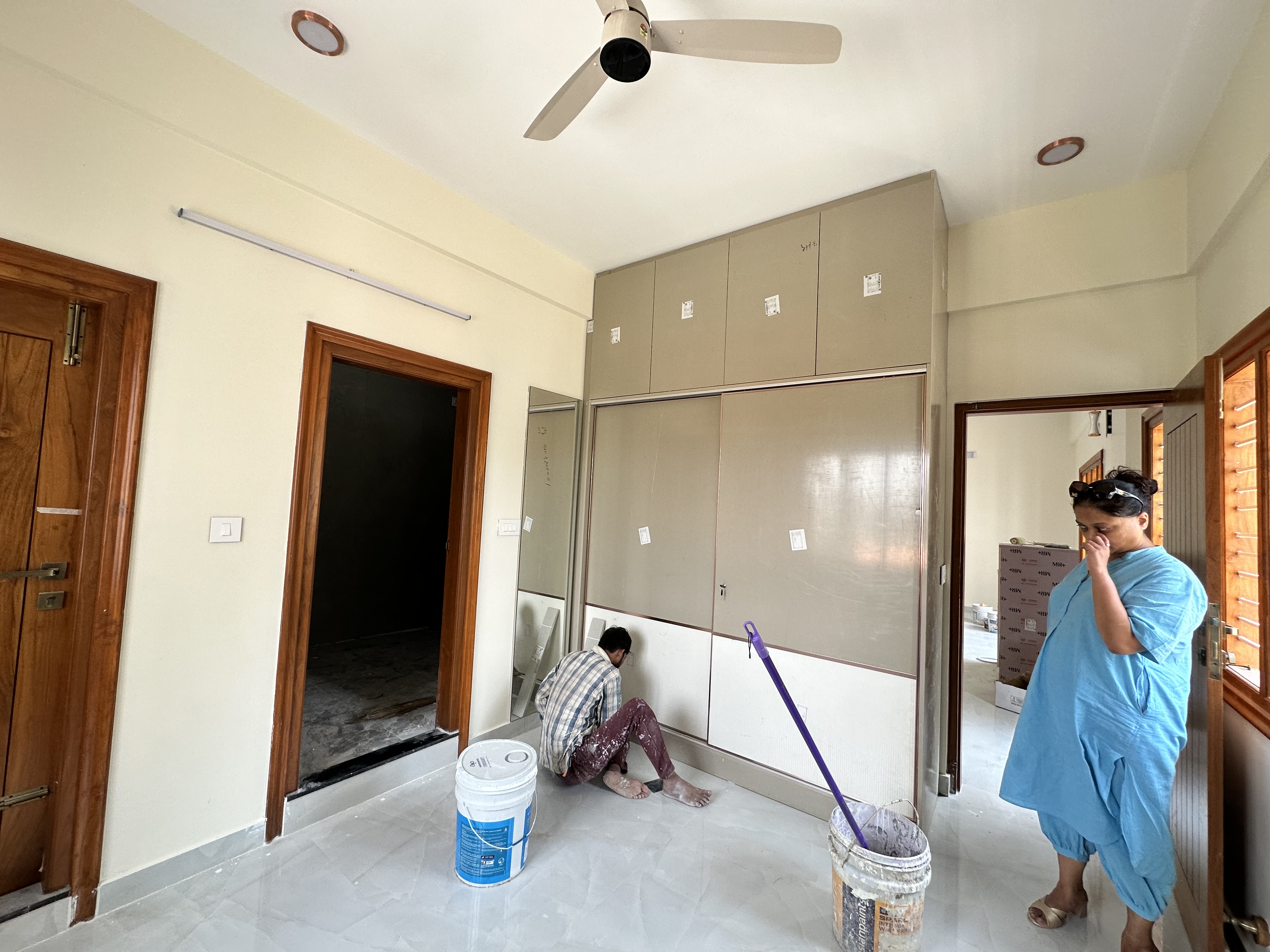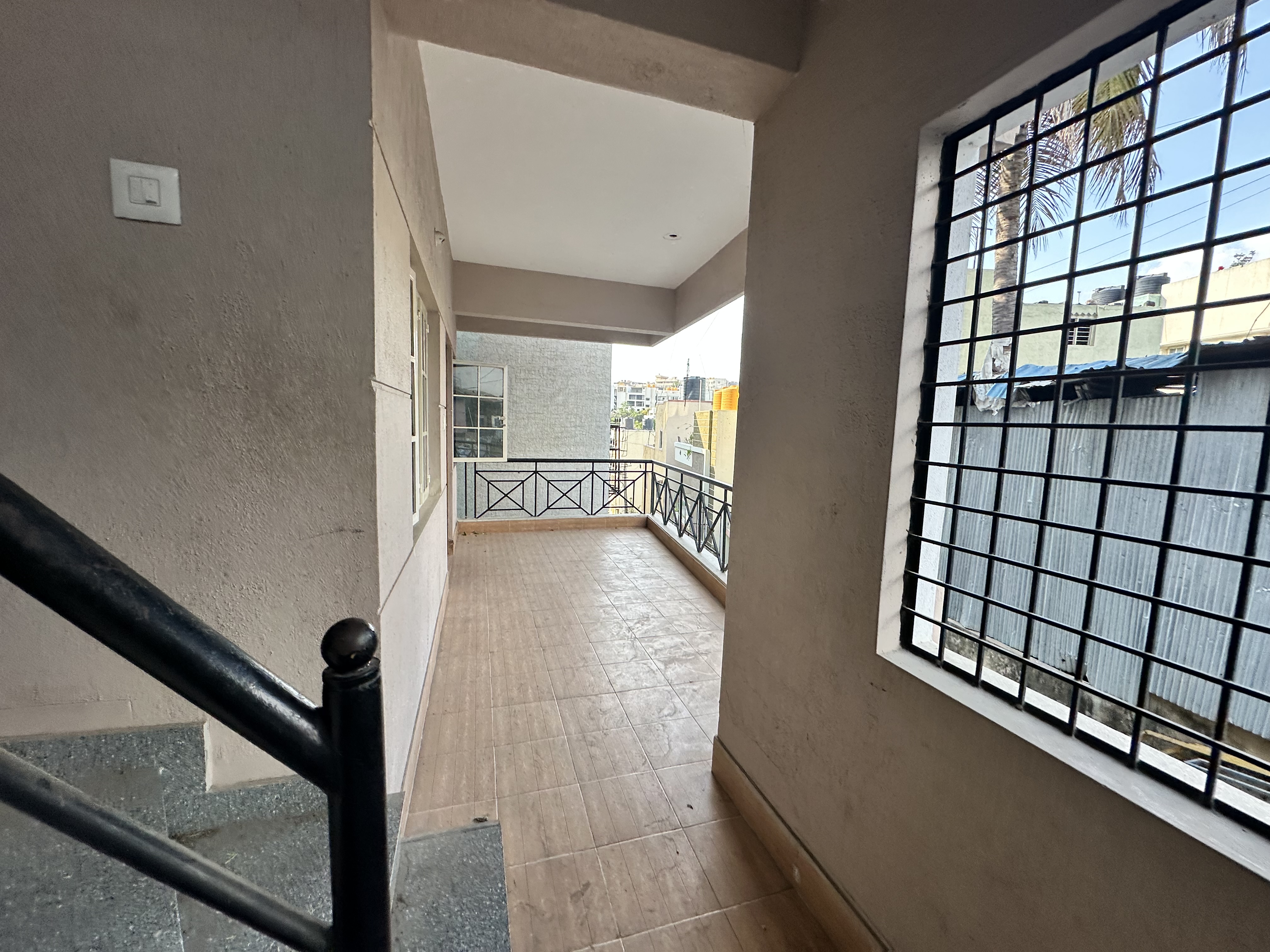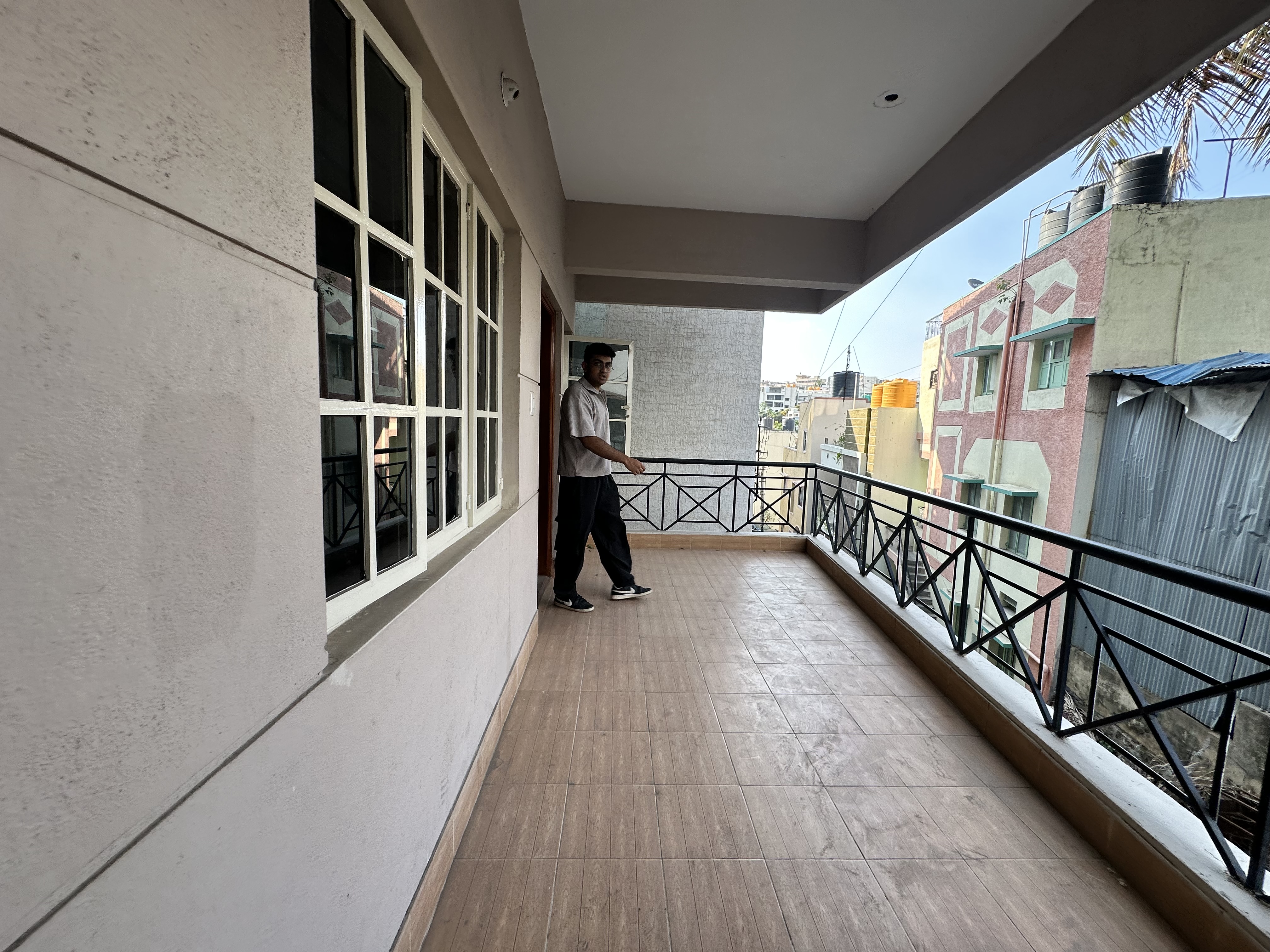 This three-bedroom, two-bathroom builder floor on KR Road in Bangalore presents a well-ventilated living space with a road view from its balcony.