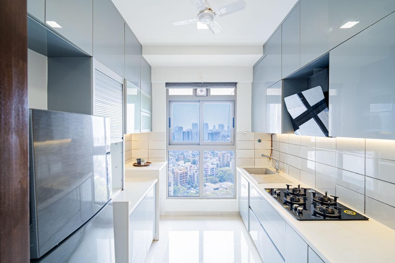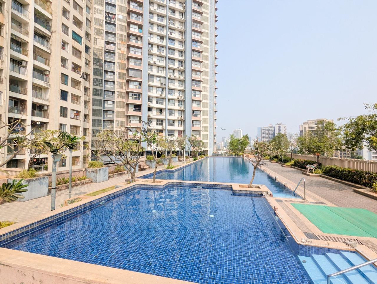 Wake up to a pleasant garden view from the 19th floor of this newly built, semi-furnished two-bedroom Flats at Chandak 34 Park Estate in Goregaon West, Mumbai.