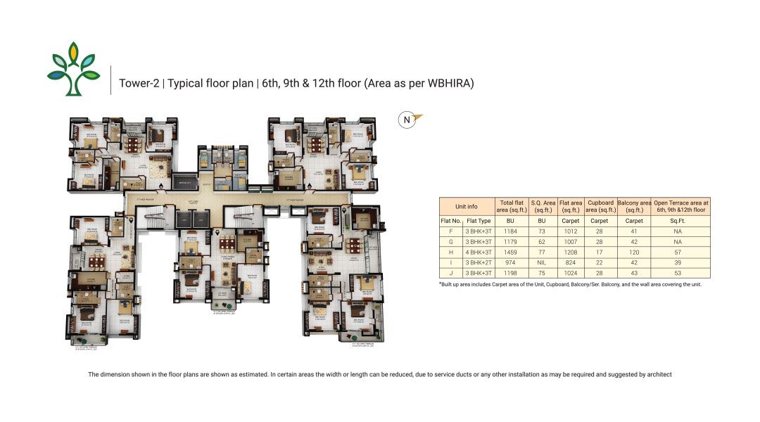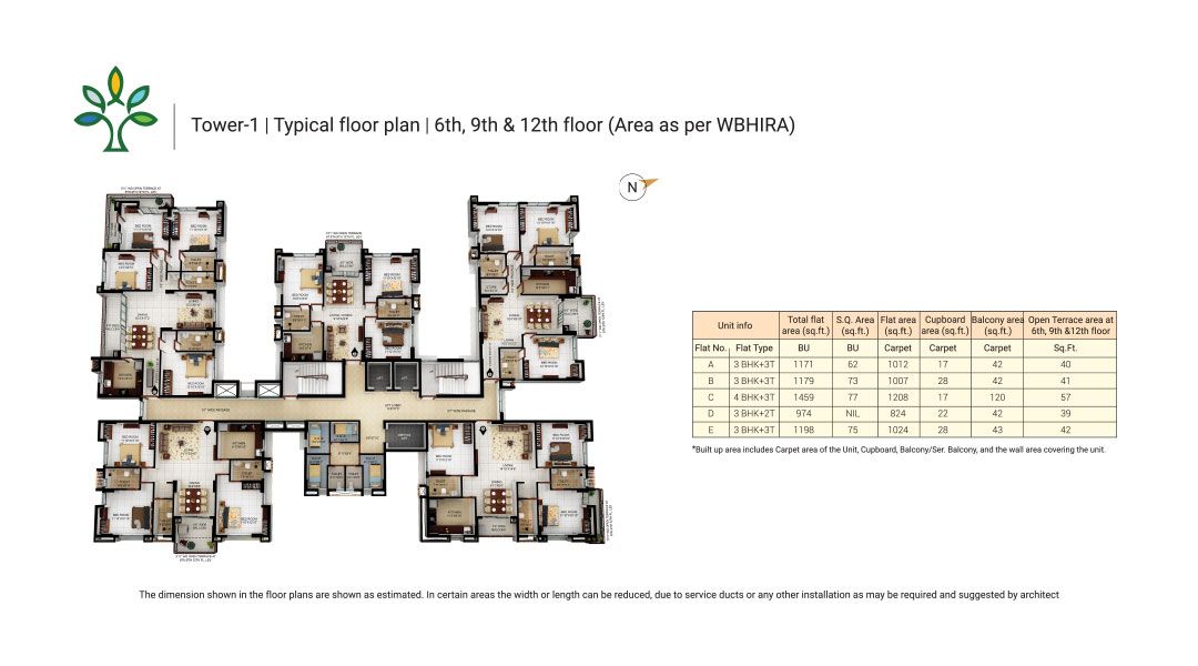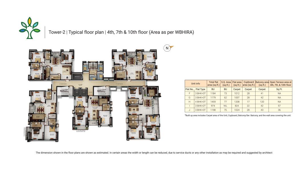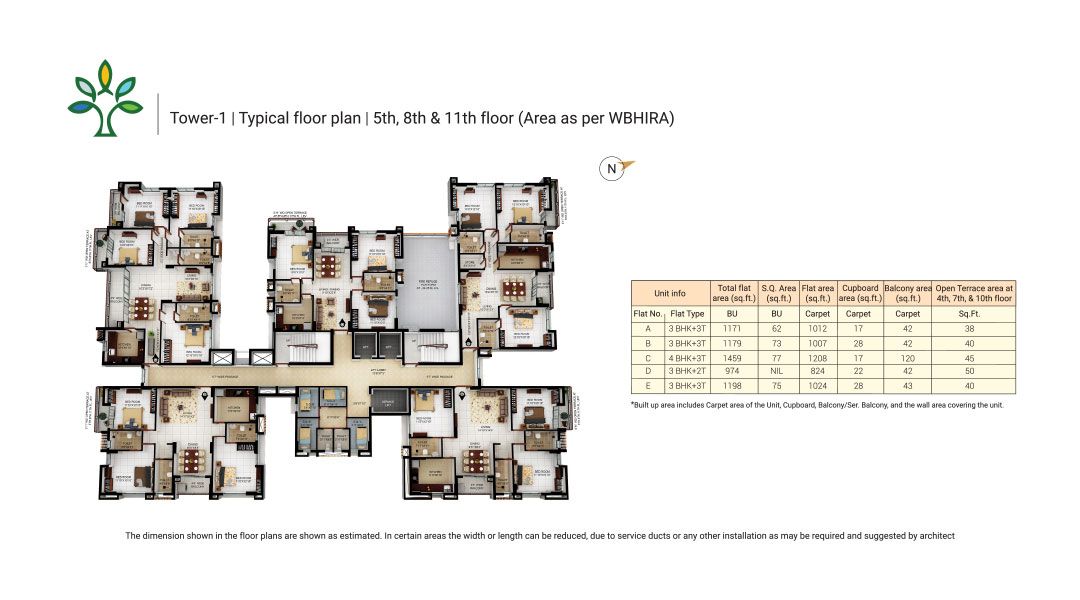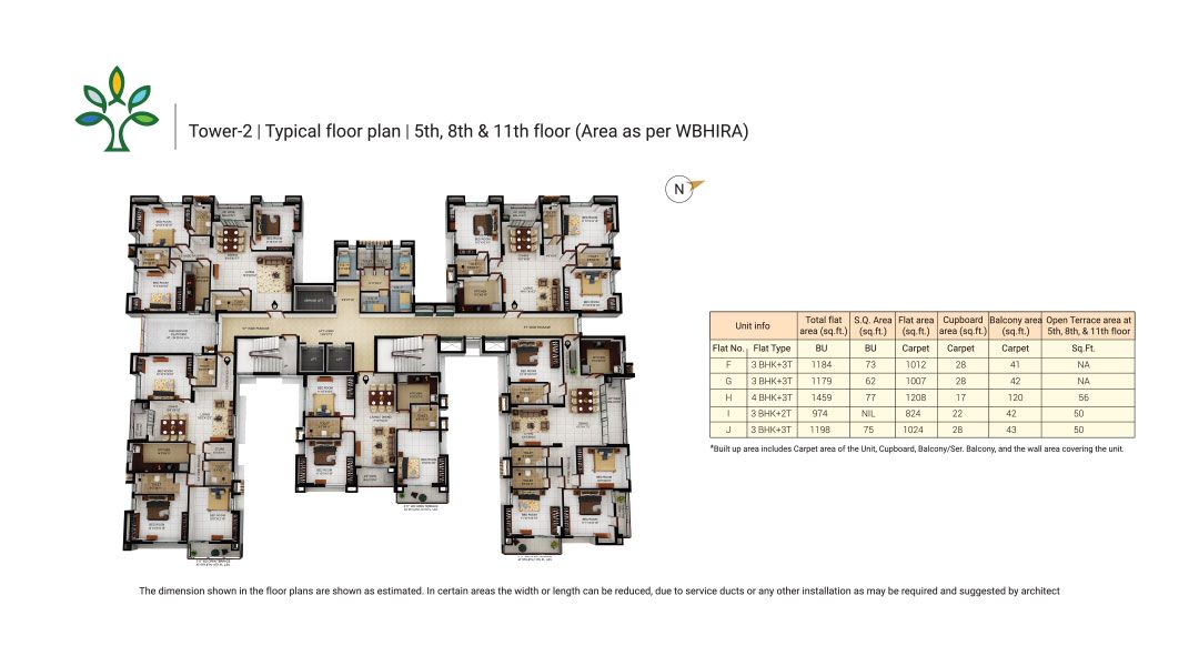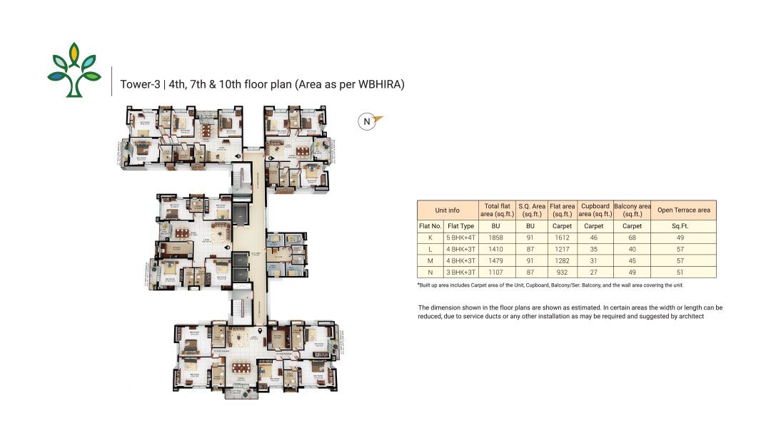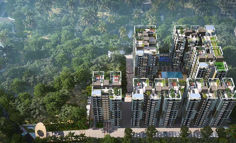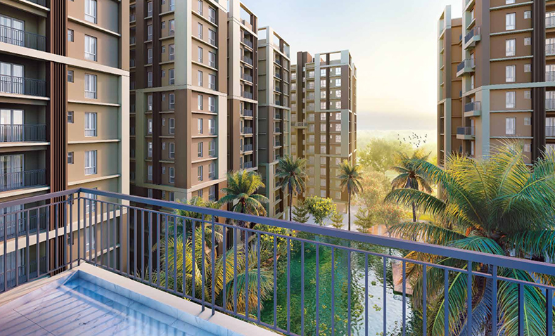 This unfurnished 3-bedroom Flats in Merlin Elements, Alipore, Kolkata, offers a tranquil Garden View from its 8th-floor position.