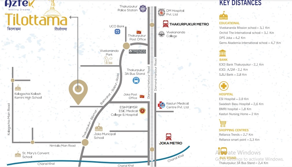 Acquire a lifestyle of convenience and comfort in Thakurpukur, Kolkata, with this unfurnished two-bedroom, two-bathroom Flats in Aztek Tilottama, available for sale.