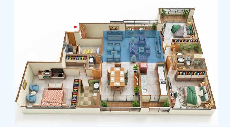 A generous four-bedroom, five-bathroom residence is now available for purchase in the esteemed Godrej Blue on B L Saha Road, Kolkata.